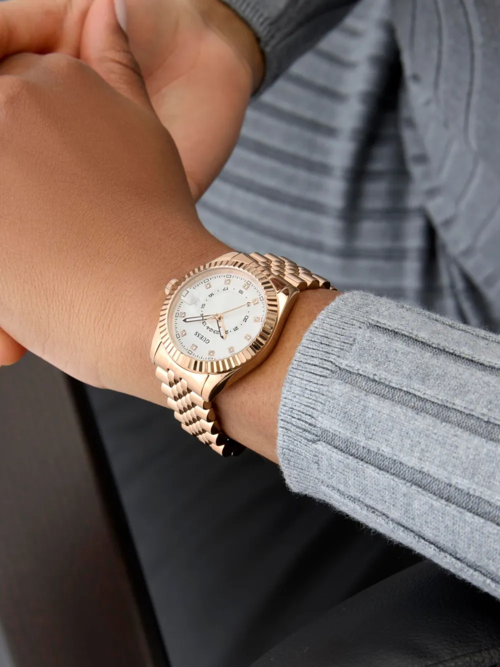 • Заводная коронка цвета розового золота