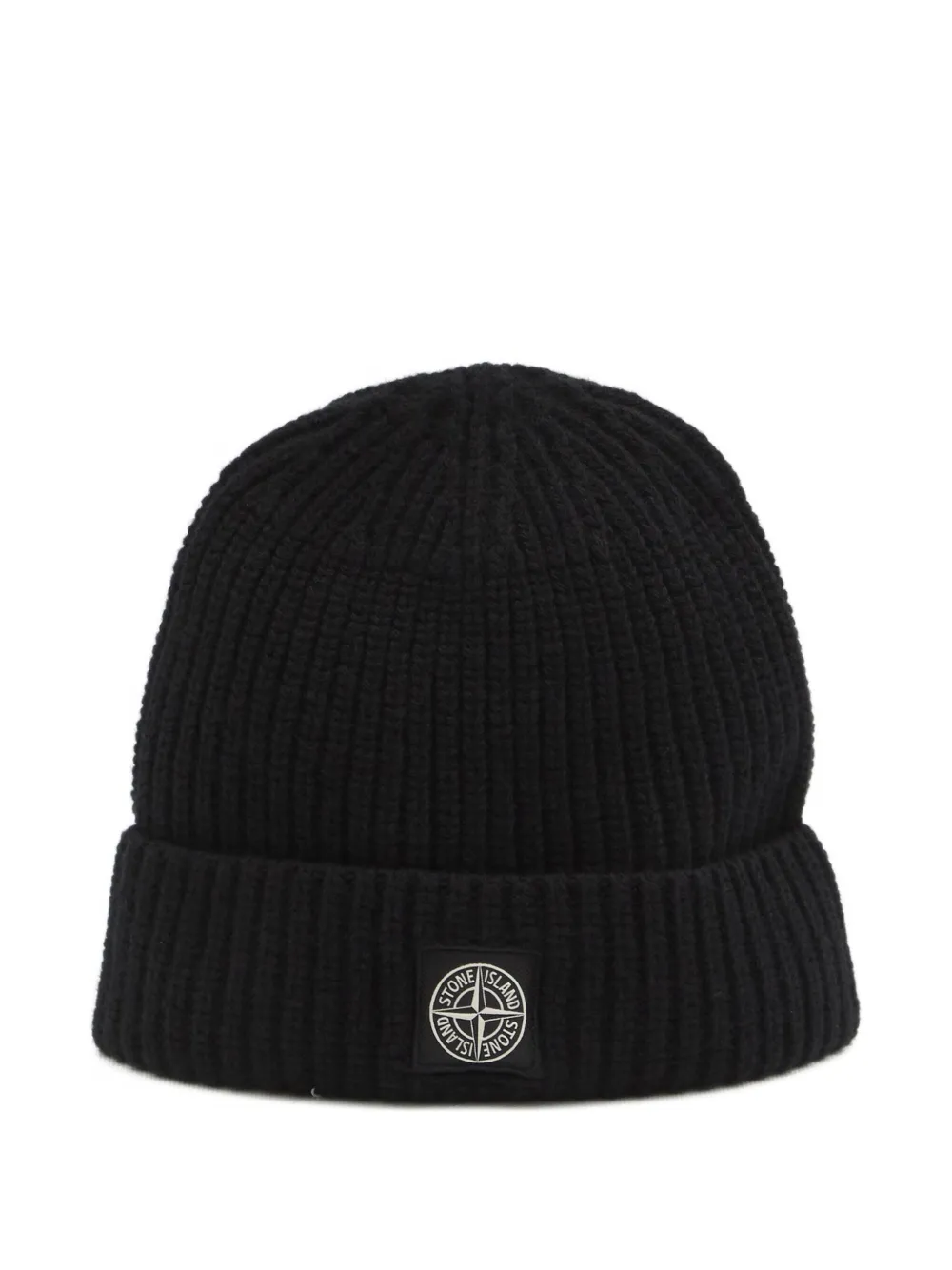 Шапка бини в рубчик с логотипом Stone Island, черный