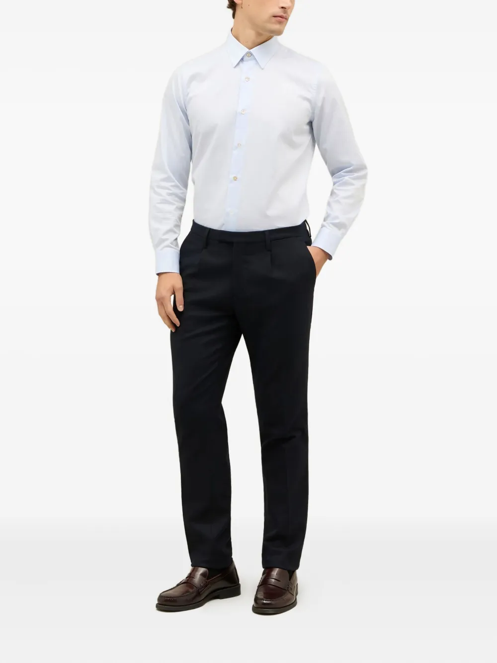 светло-голубая рубашка на пуговицах с длинными рукавами, манжетами на пуговицах и классическим воротником