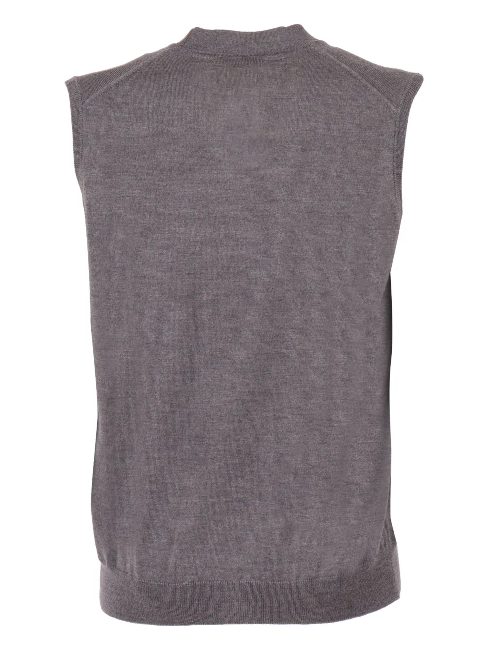 Серый жилет без рукавов с V-образным вырезом, застежкой на пуговицы и ребристым подолом