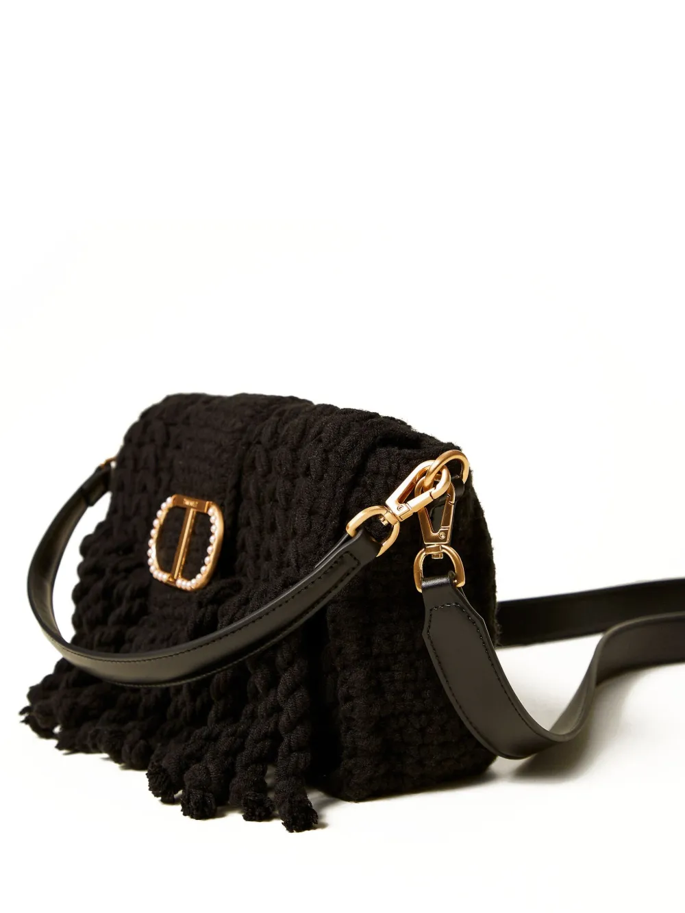 Сумка-сэтчел с логотипом и бахромой Twinset, черный