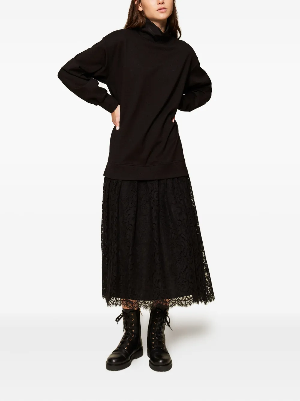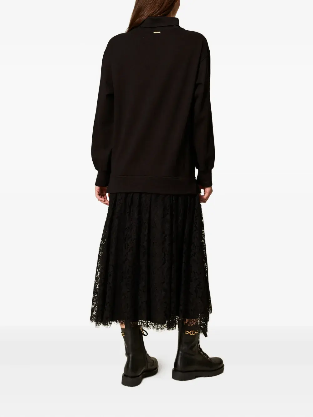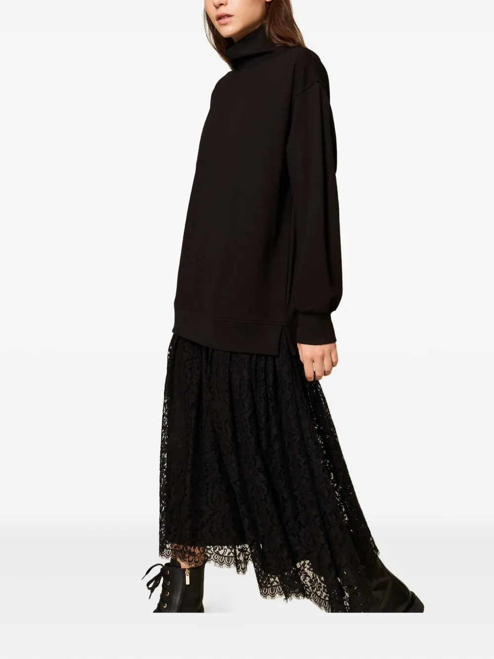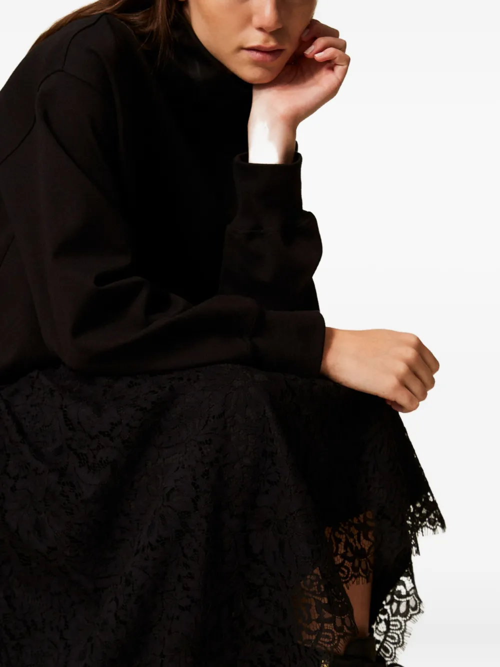 черный флис с отделкой кружевом, длинные рукава, высокий воротник