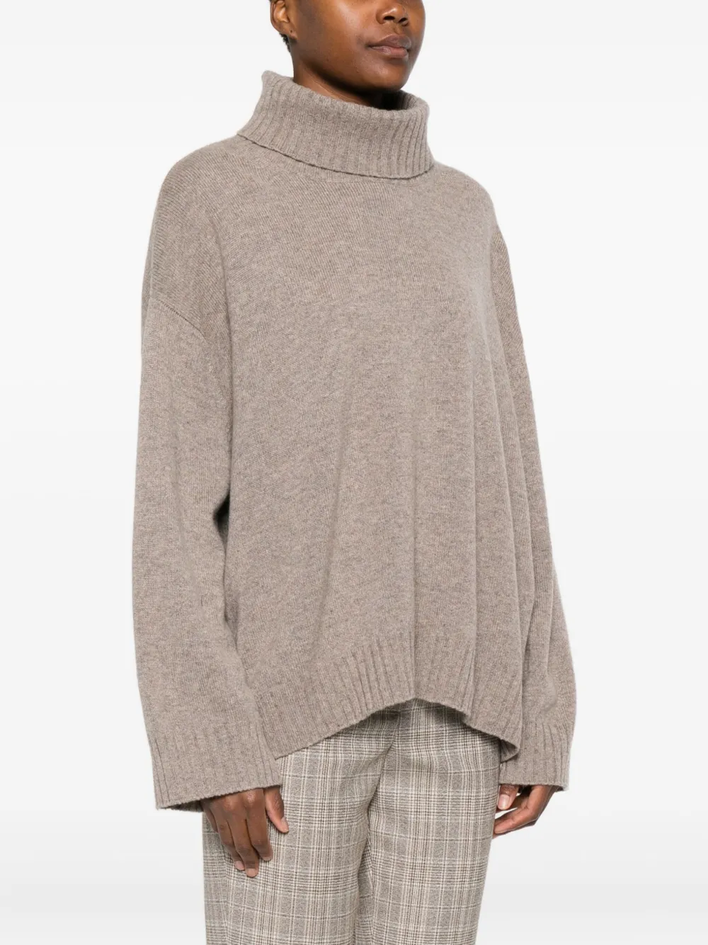Свитер в рубчик с высоким воротником Eric Bompard, бежевый