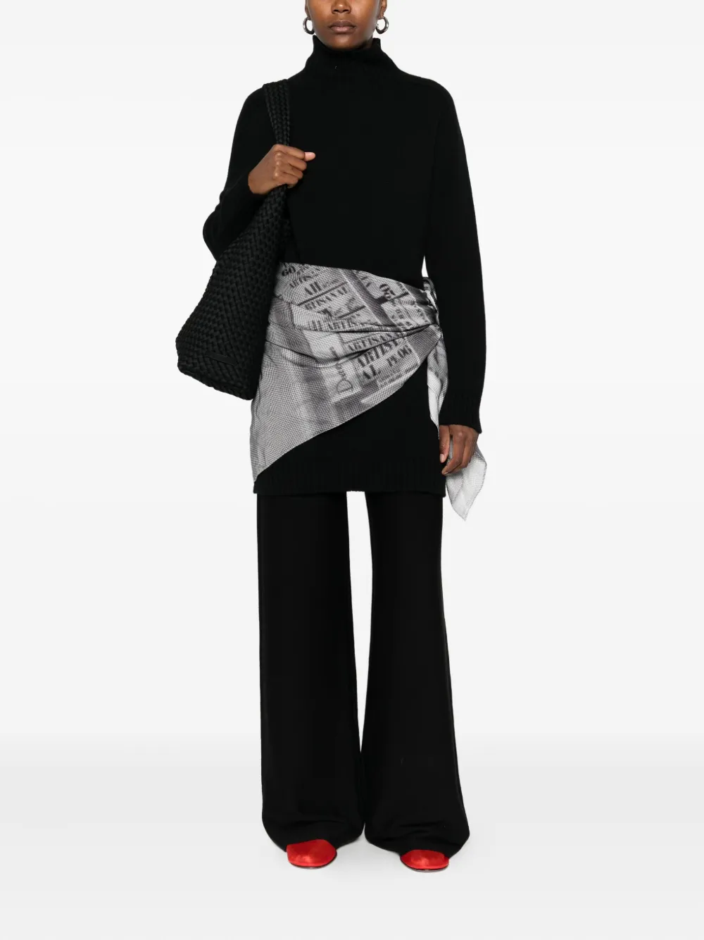 Кашемировое платье мини с высоким воротником Eric Bompard, черный