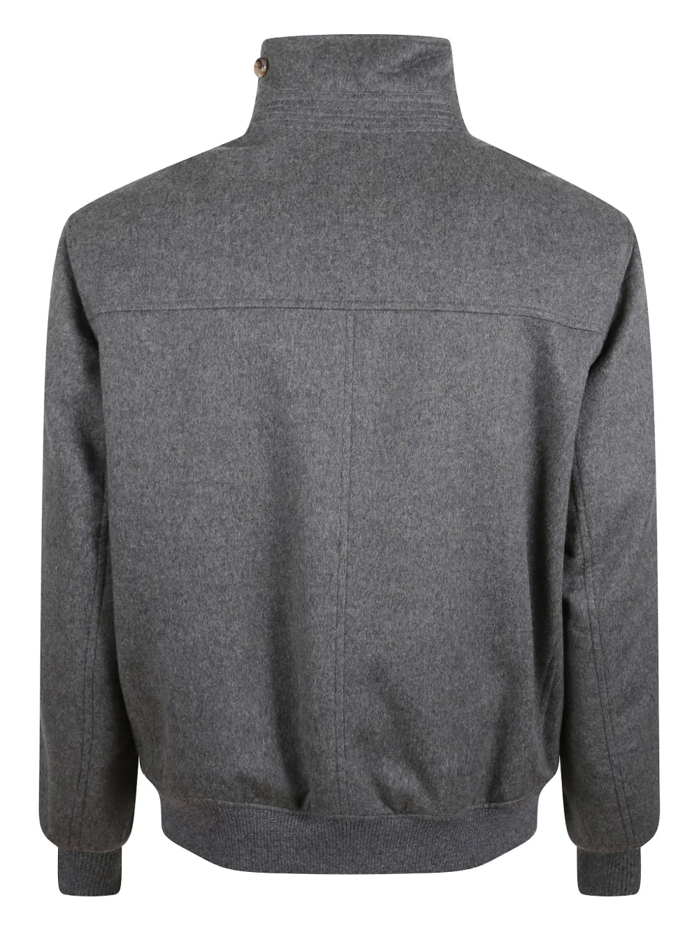 серый цвет, застежка на пуговицы, застежка-молния, ребристый низ, ребристые манжеты, высокий воротник