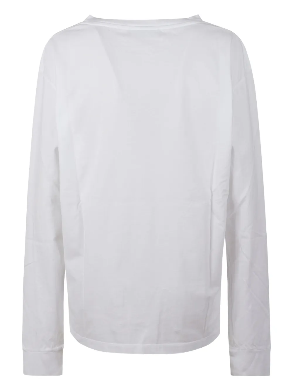 белый цвет, накладные карманы, нашивка с логотипом, длинные рукава, круглый вырез