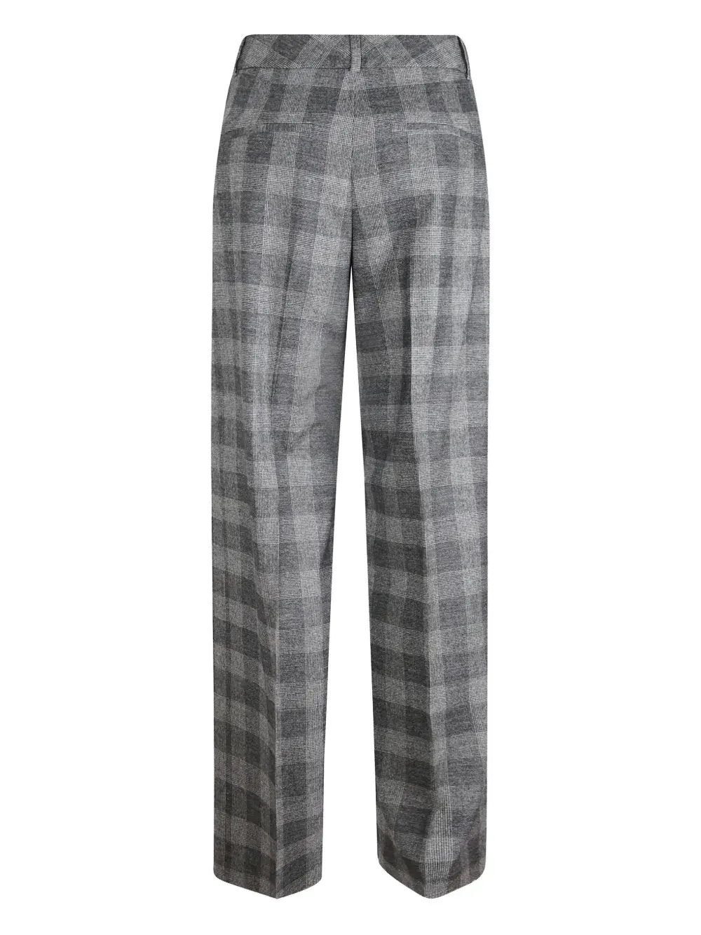 серые прямые брюки в клетку с шлевками для ремня и скрытой застежкой