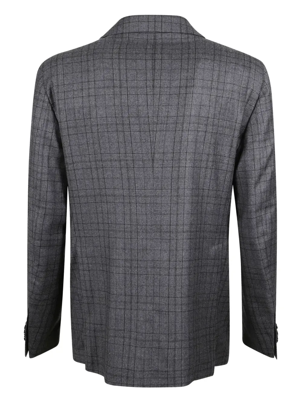 антрацитовый комплект в клетку: лацканы, застежка на пуговицы спереди, клапанные карманы