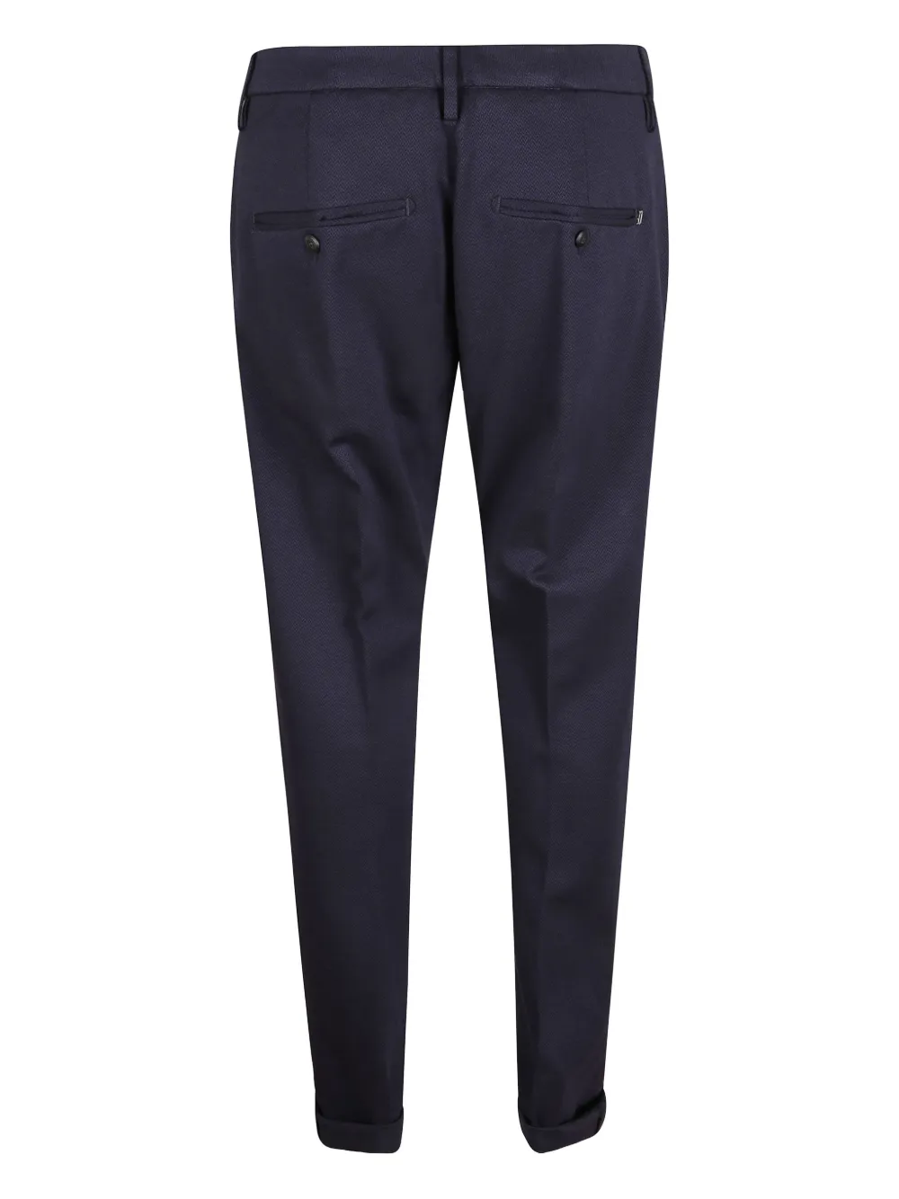 синий цвет, узор "елочка", прорезной карман, шлевки для ремня, застежка на пуговицу, логотип
