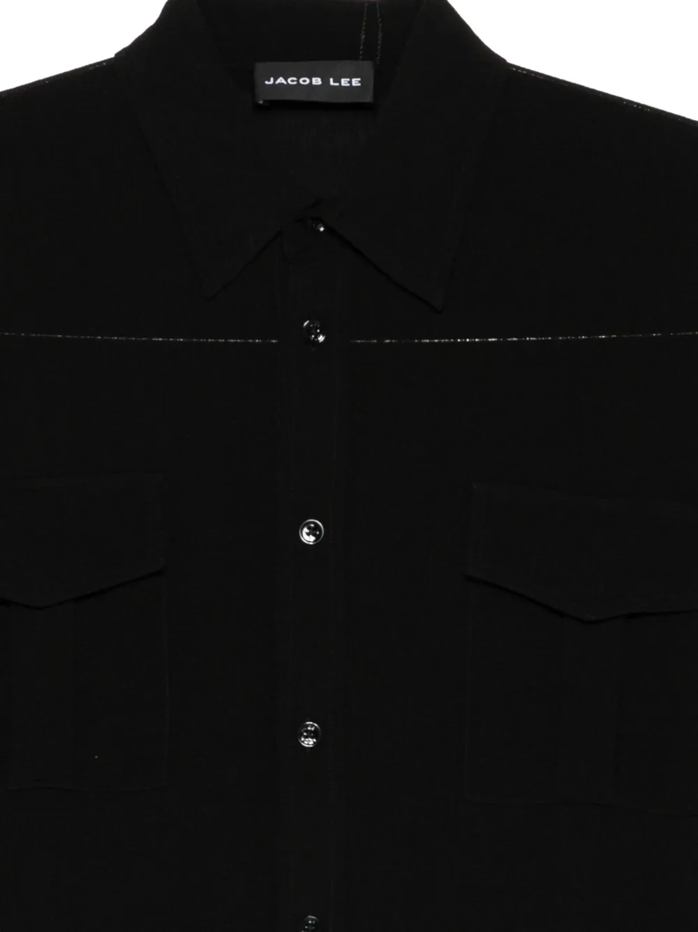 чёрный цвет, застёжка на пуговицы спереди, нагрудные карманы, манжеты на пуговицах