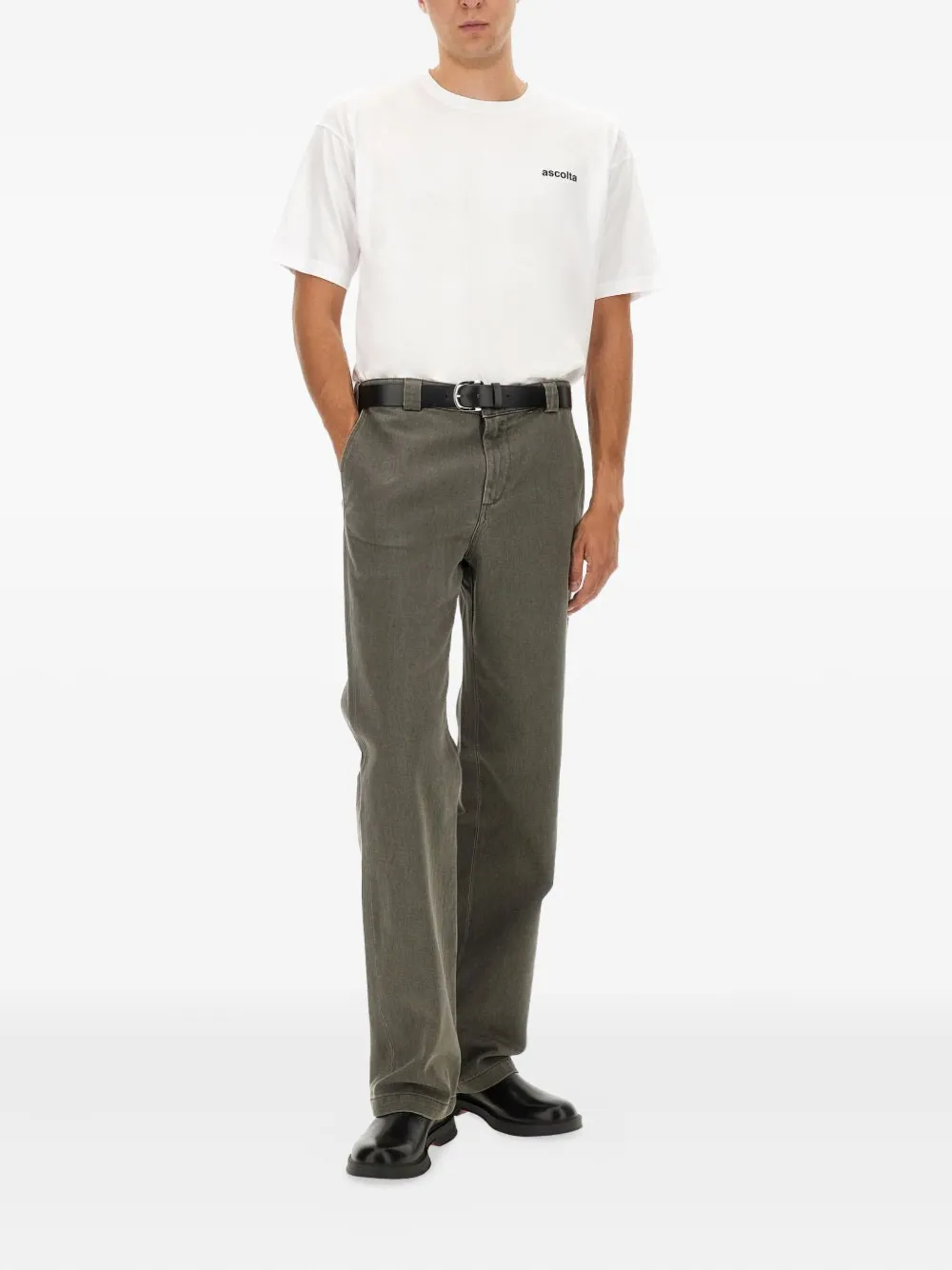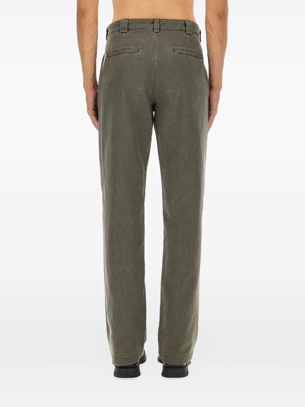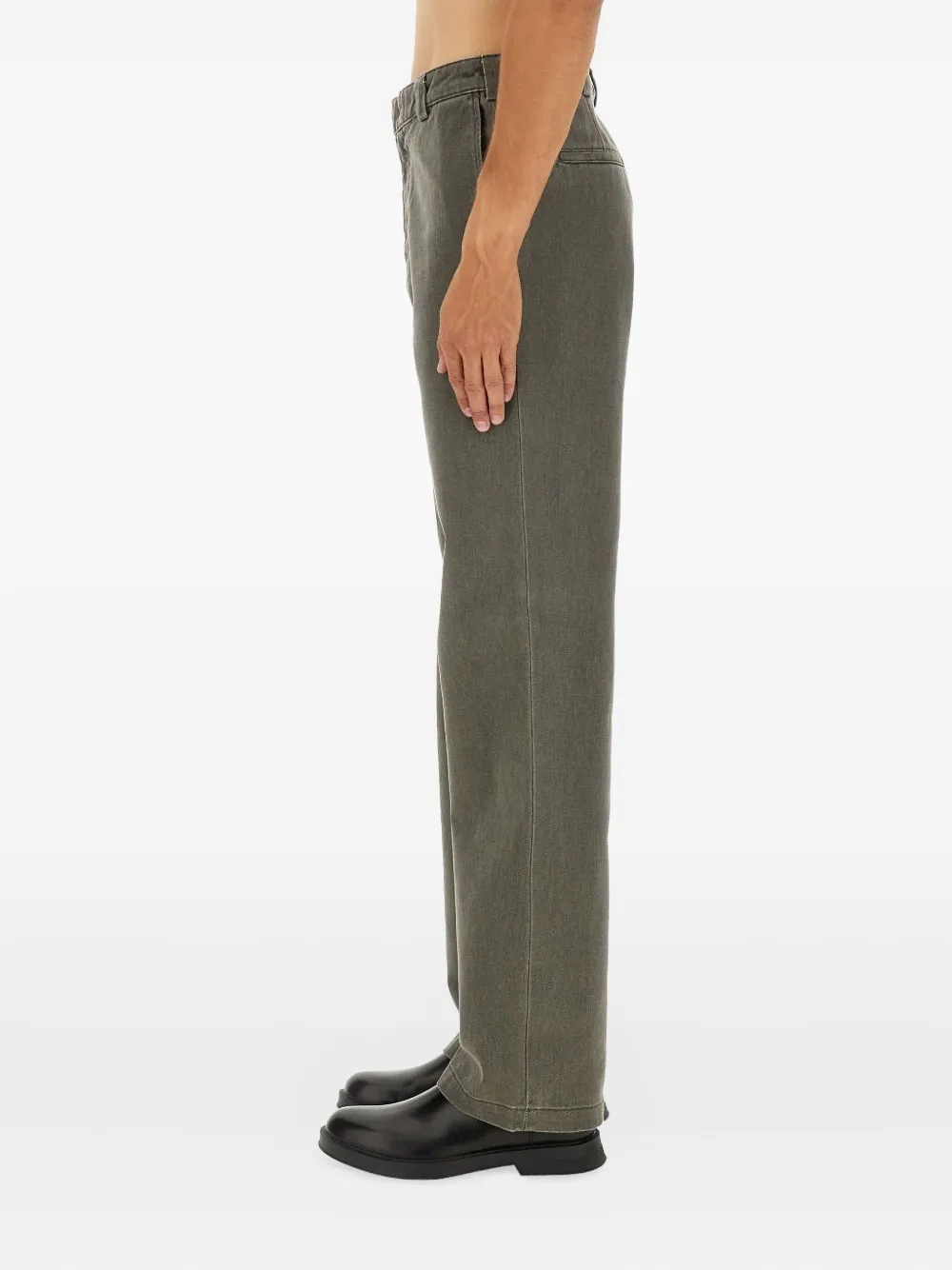 серые, шлевки для ремня, застежка на пуговицу, задние прорезные карманы