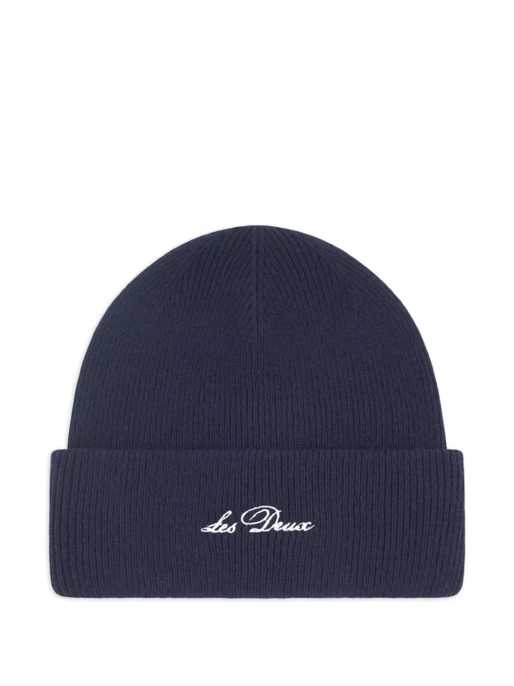 Шапка бини в рубчик с вышитым логотипом Les Deux, синий