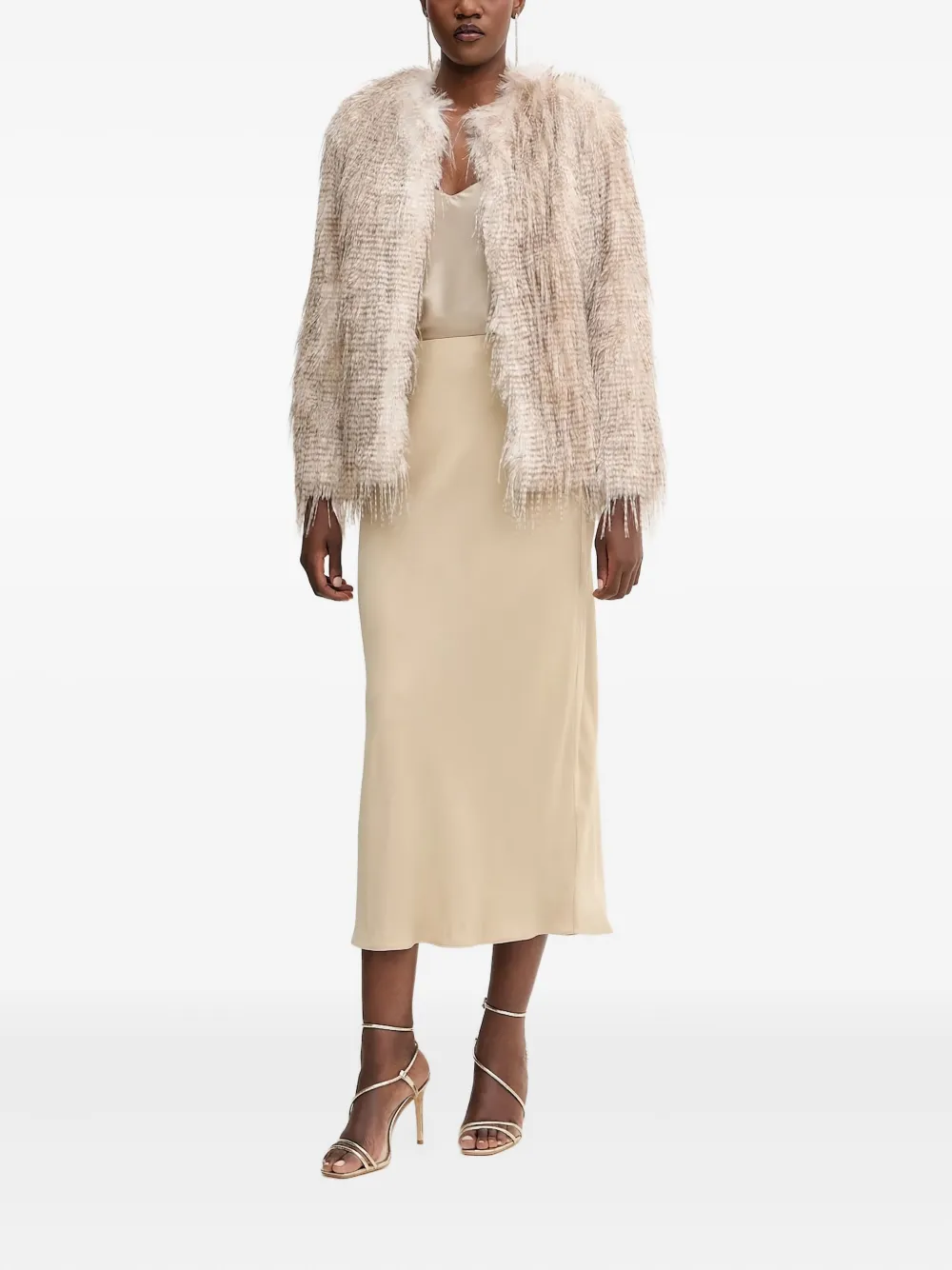 светло-бежевый, миди-длины, с прямым подолом