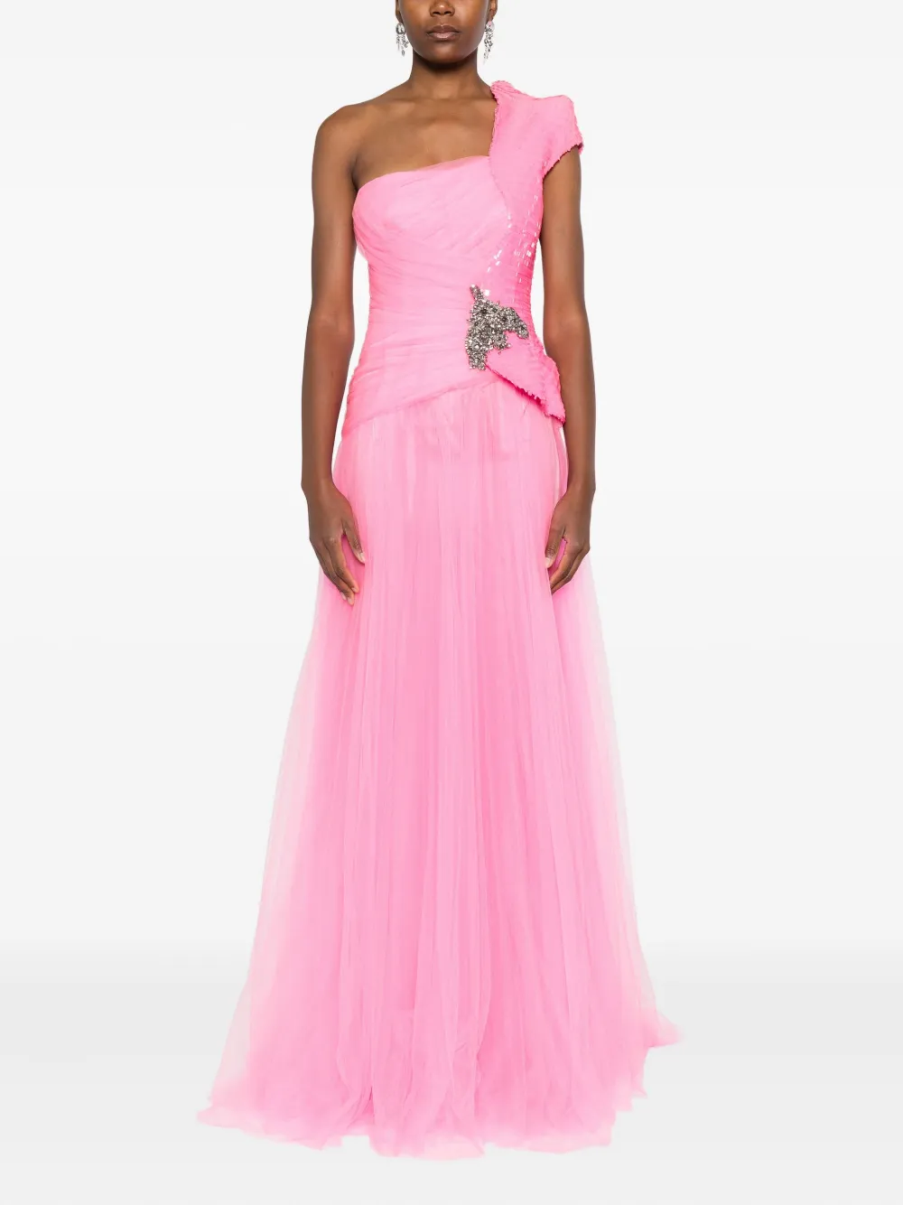 Декорированное платье макси на одно плечо Gemy Maalouf, розовый