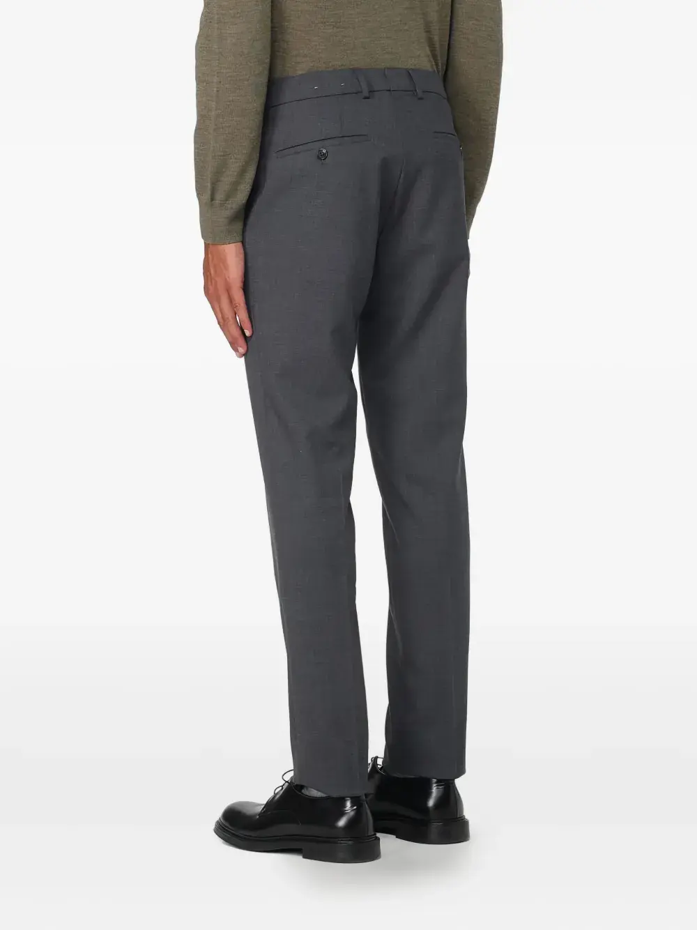серые шлевки для ремня, застежка на пуговицу, боковые карманы в швах, задние прорезные карманы