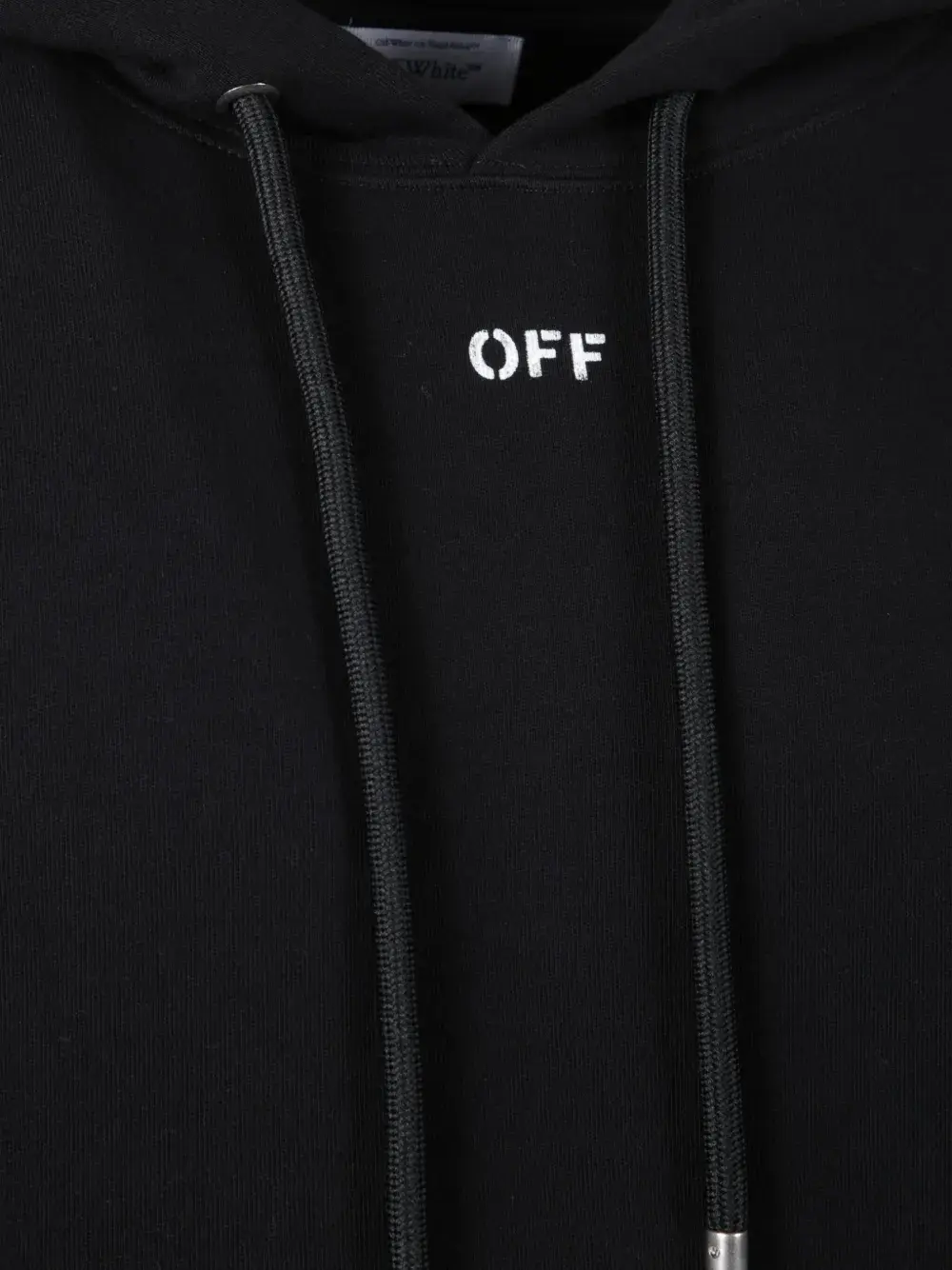 чёрное худи с графическим принтом, кулиской, карманом-кенгуру спереди, длинными рукавами и рубчатым низом