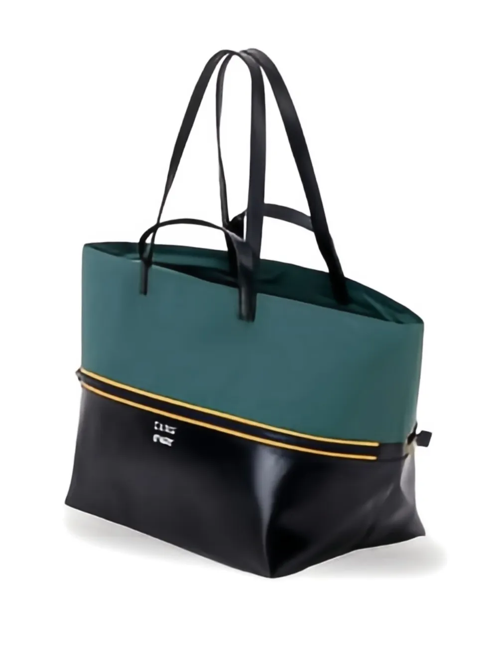зелёная и чёрная сумка с верхней ручкой и молнией