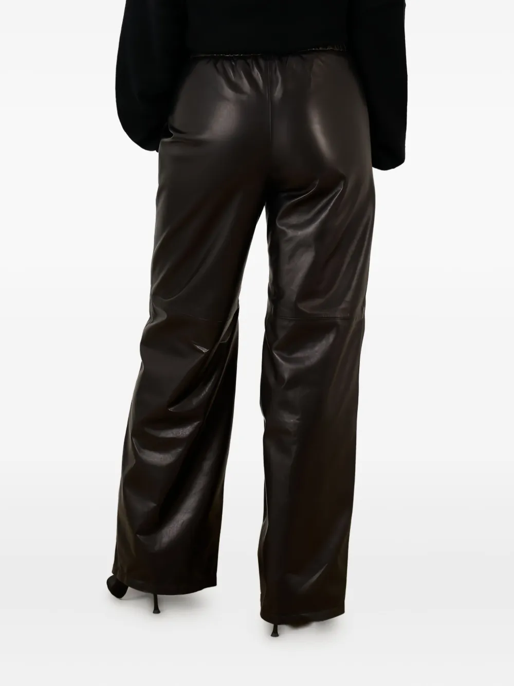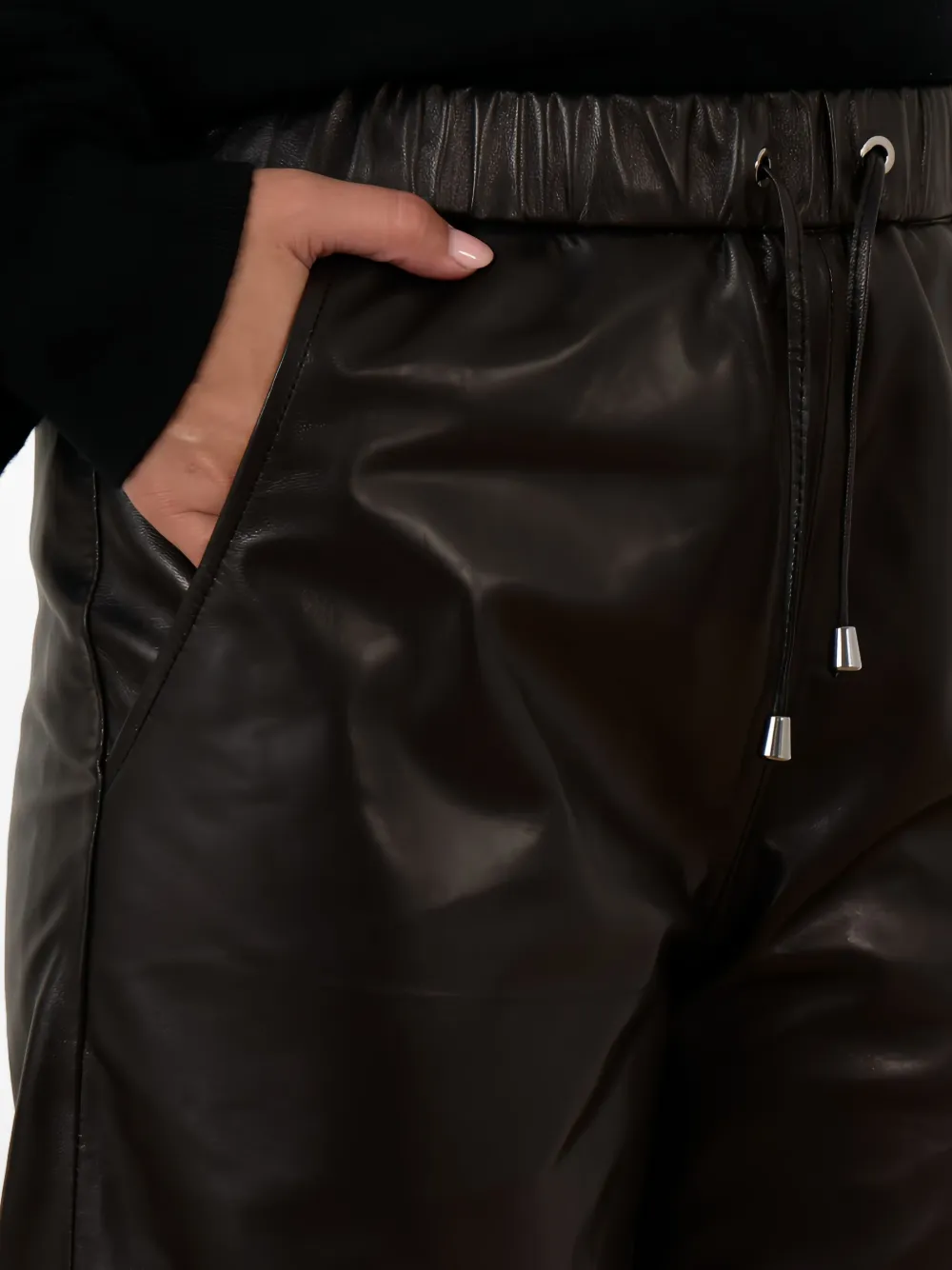 чёрные брюки с эластичным поясом на завязках, боковыми карманами, вставками и прямыми штанинами