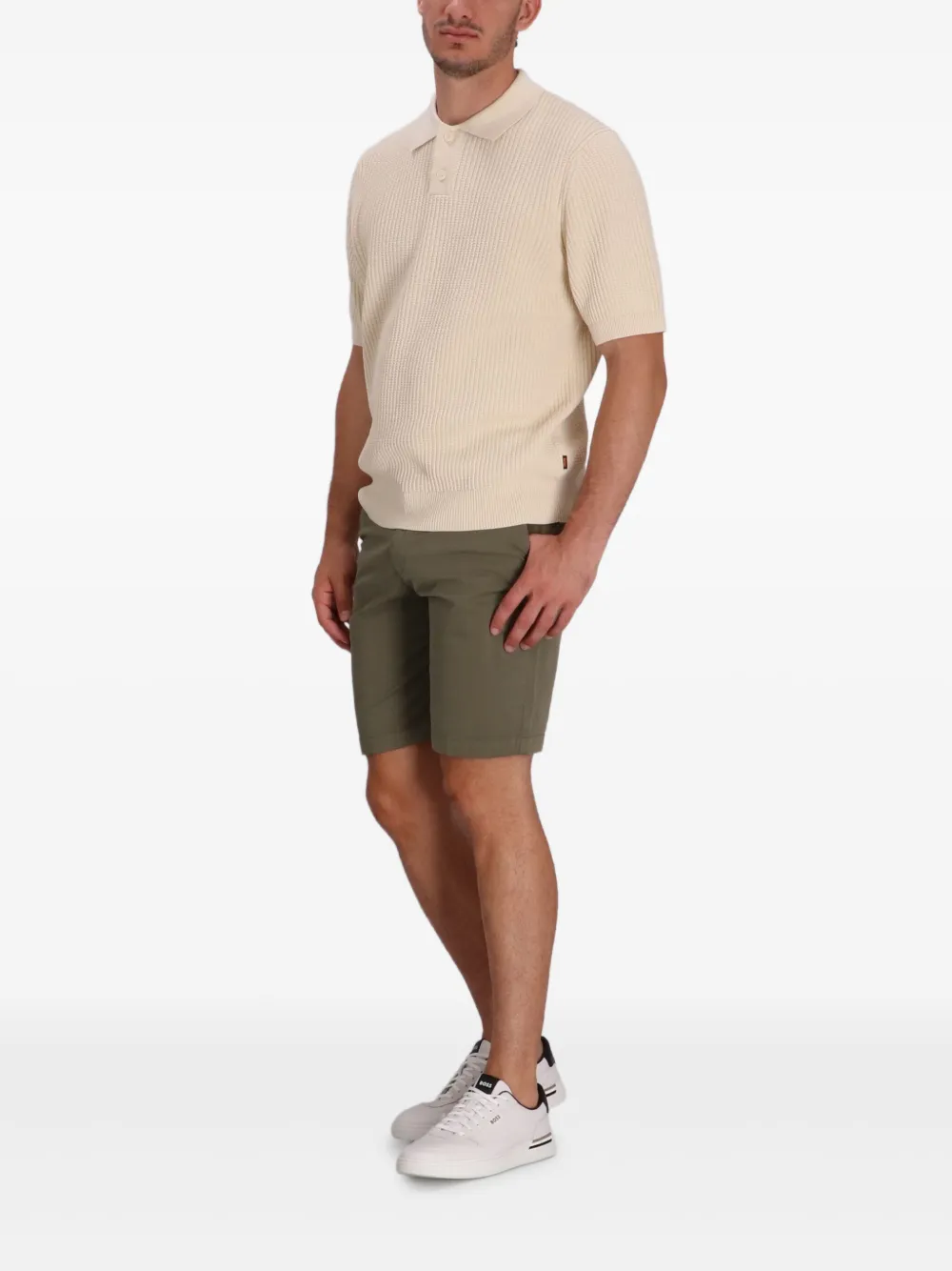 Свитер в рубчик с воротником поло Boss, желтый
