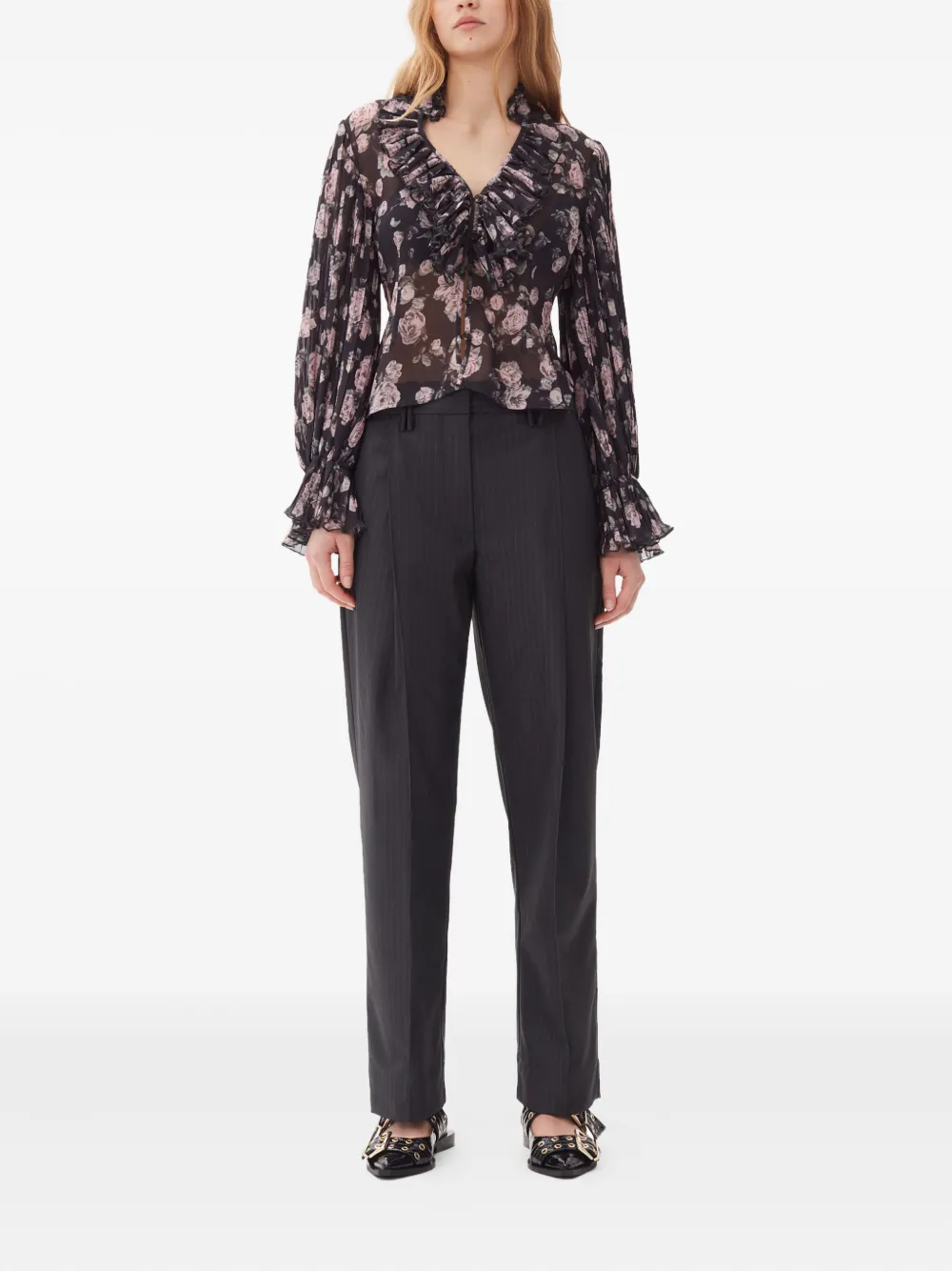 Блузка с цветочным принтом Ganni, черный