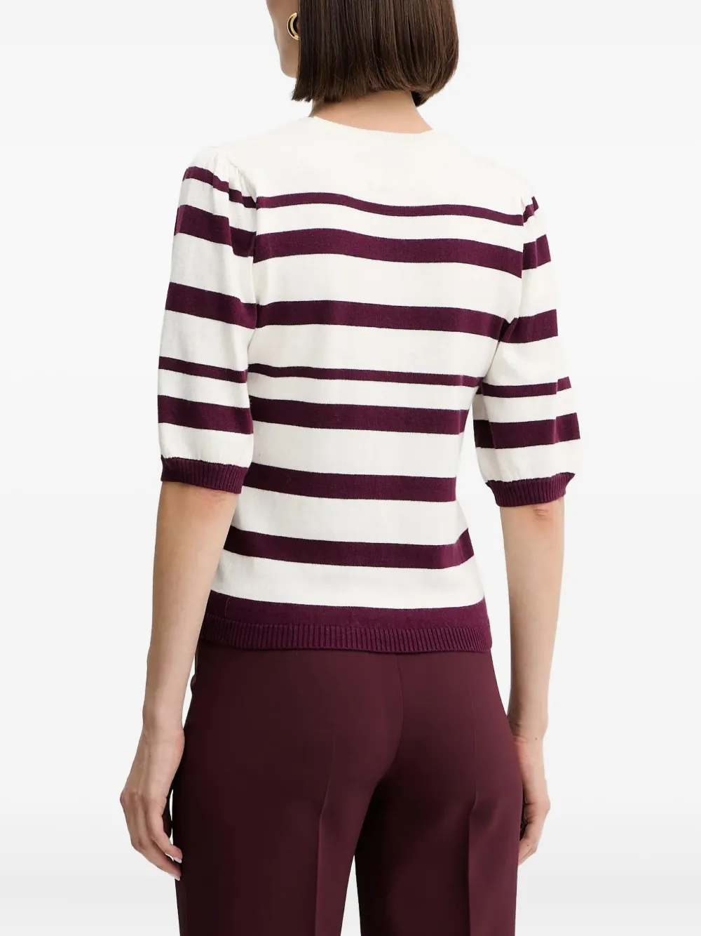 белый с полосатым узором, с бисерной отделкой, круглый вырез, короткие рукава, ребристый край