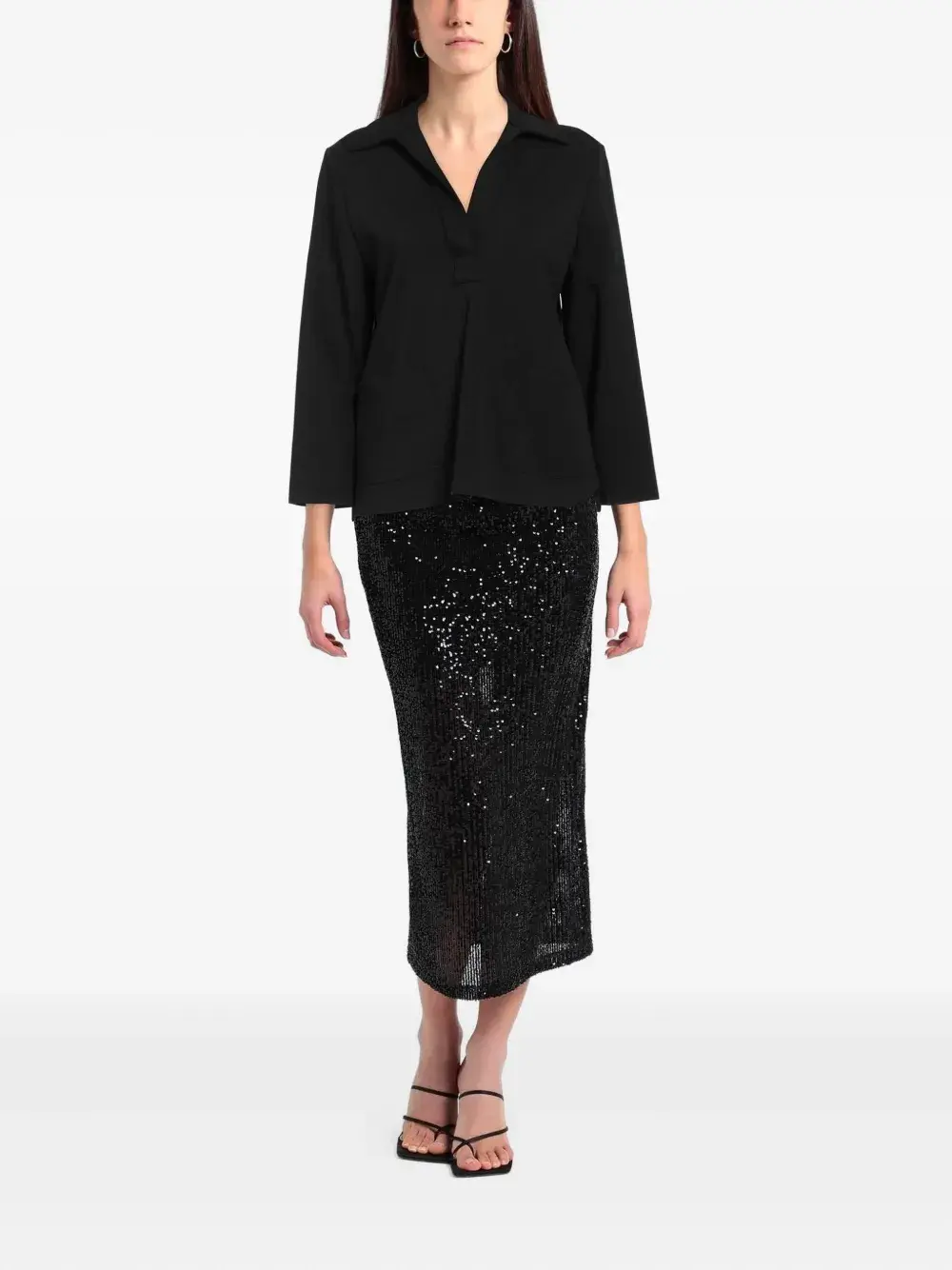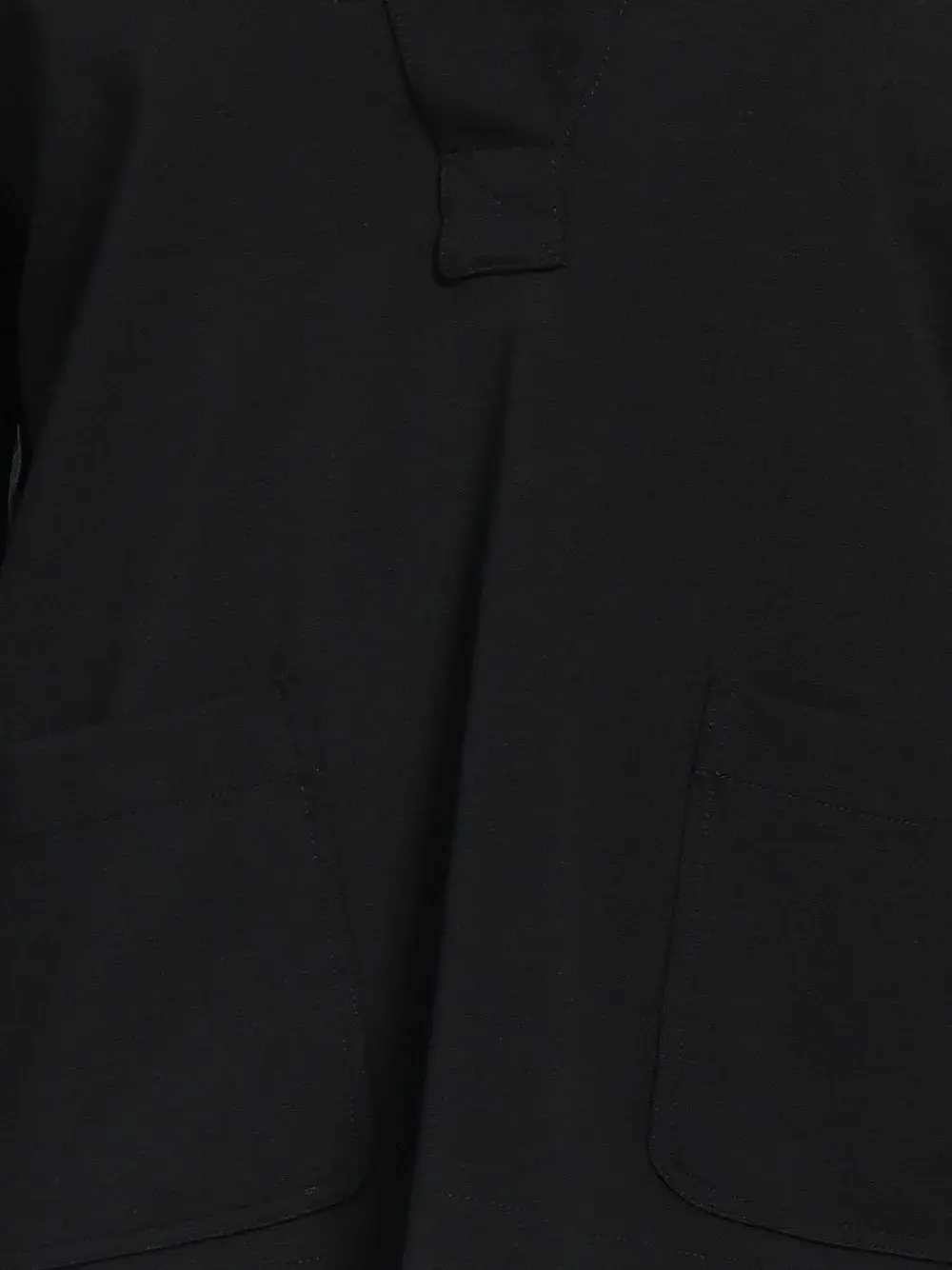 черный трикотажный жакет с вырезом на воротнике, накладными карманами спереди, рукавами три четверти и V-образным вырезом