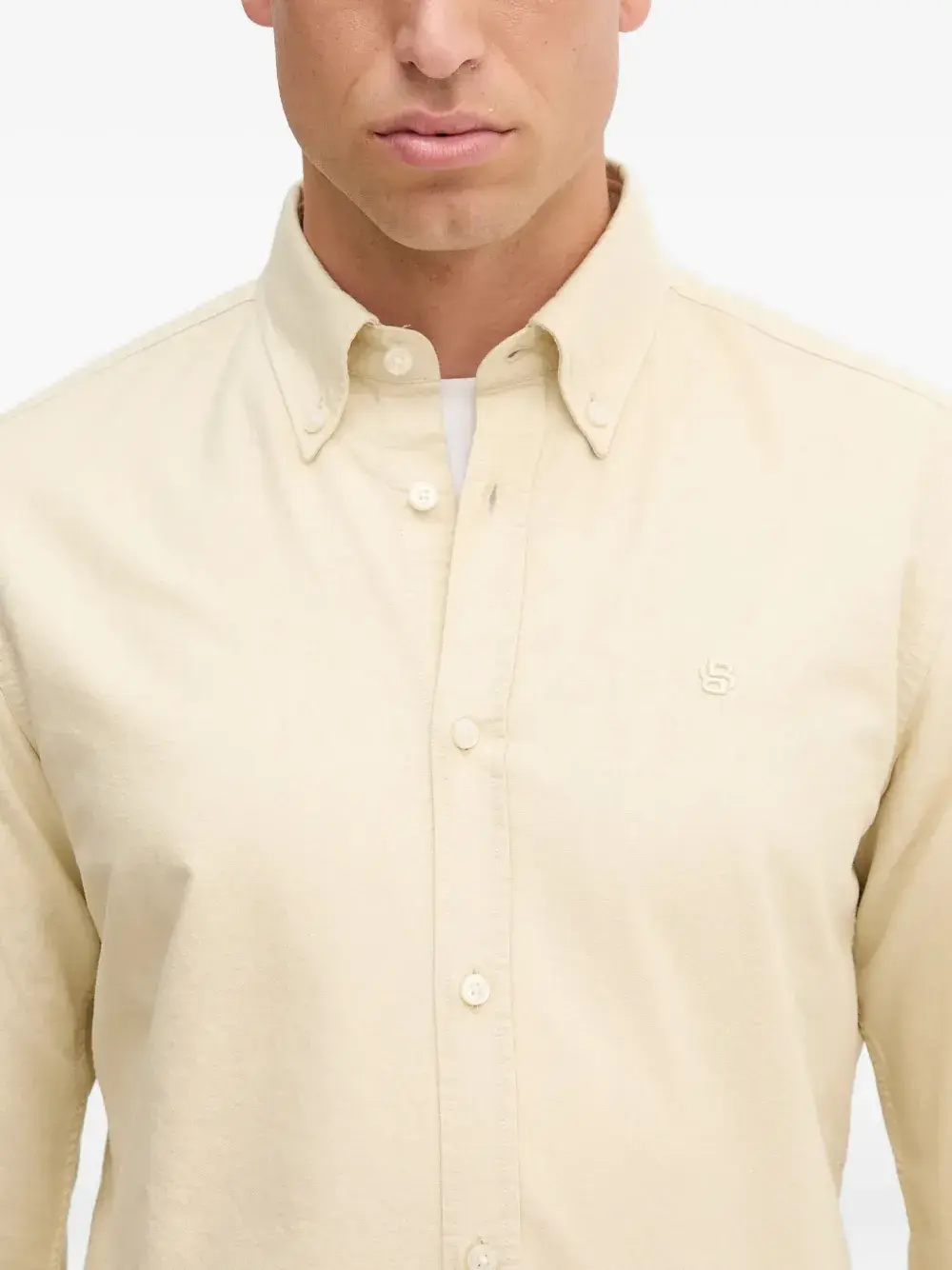 светло-жёлтый цвет, застёгивается на пуговицы, детали с логотипом, длинные рукава, воротник на пуговицах, манжеты на пуговицах