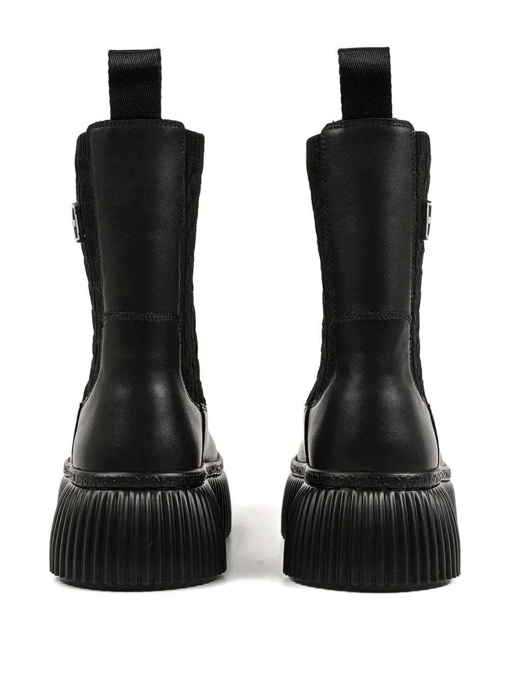 черная ребристая подошва-платформа, петля сзади, нашивка с логотипом, боковая застежка-молния, вязаная отделка