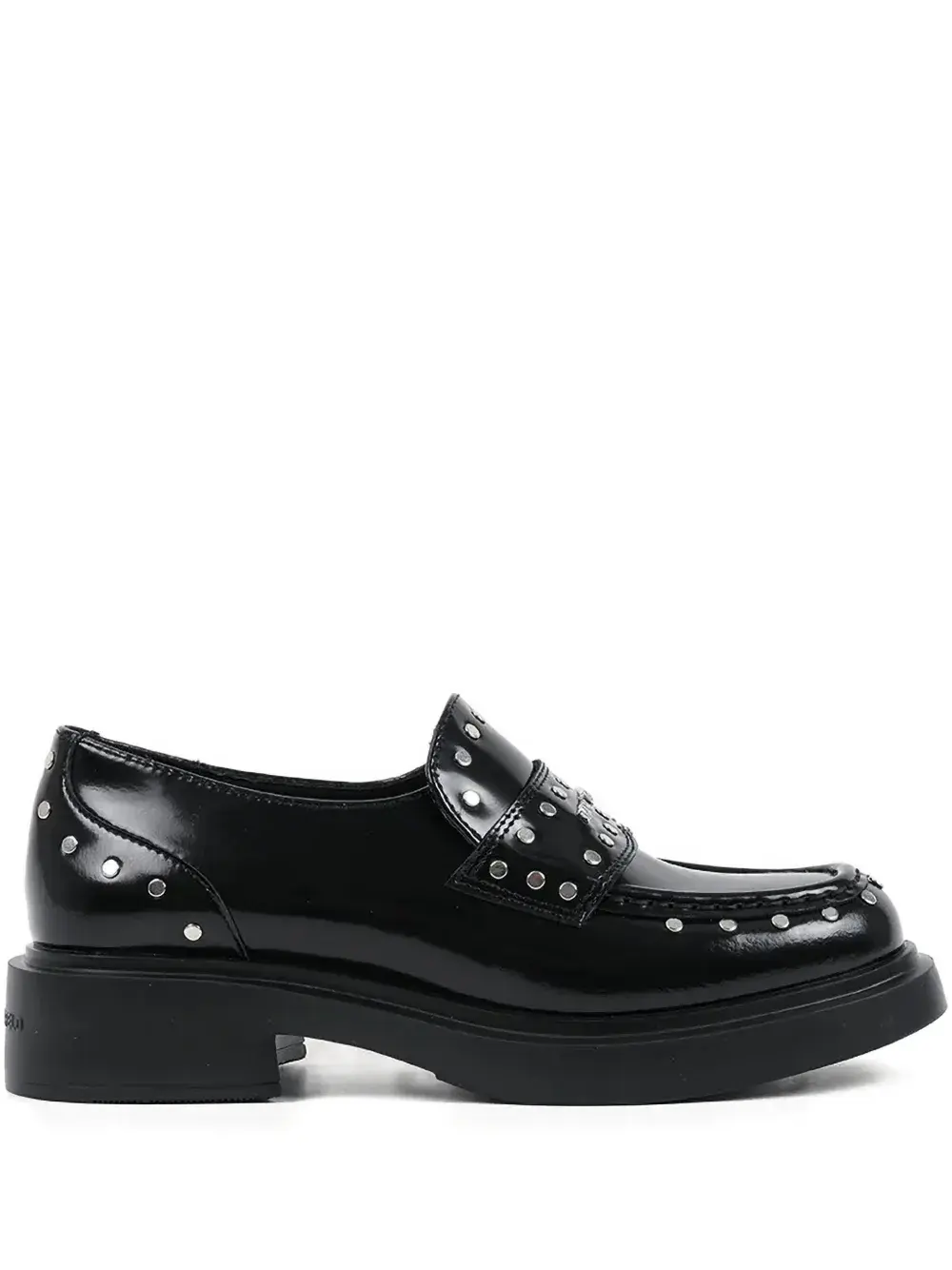 черные с декором из заклепок, на платформе, с логотипом, с круглым носком, в стиле слипонов