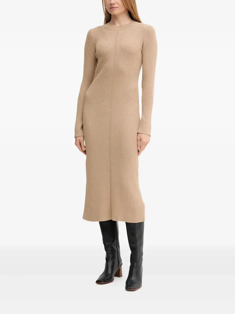 Рифленое миди-платье с разрезом Barbour, бежевый