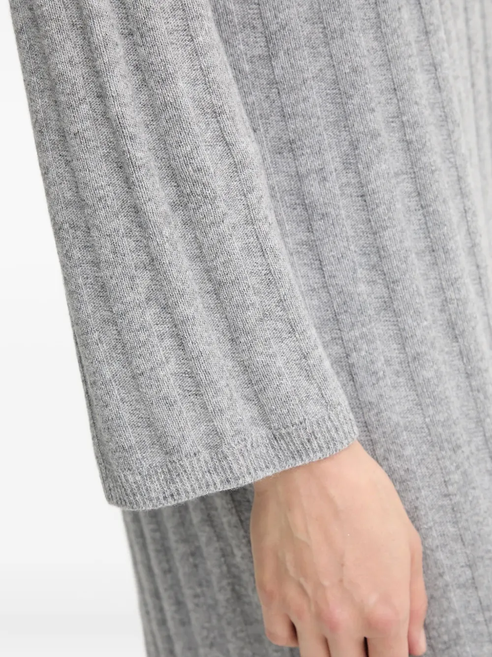 серый вязаный гольф с ребристой структурой, длинными рукавами и логотипом-нашивкой