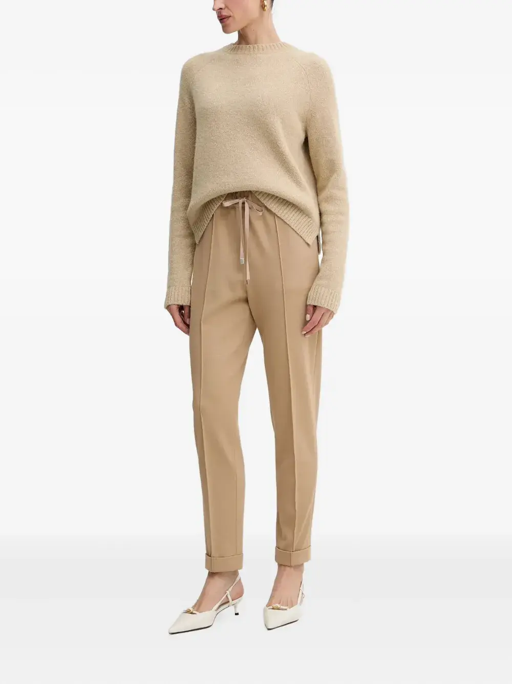 бежевый цвет, застежка на шнурок, подогнутый край, эластичный пояс, отделка швами