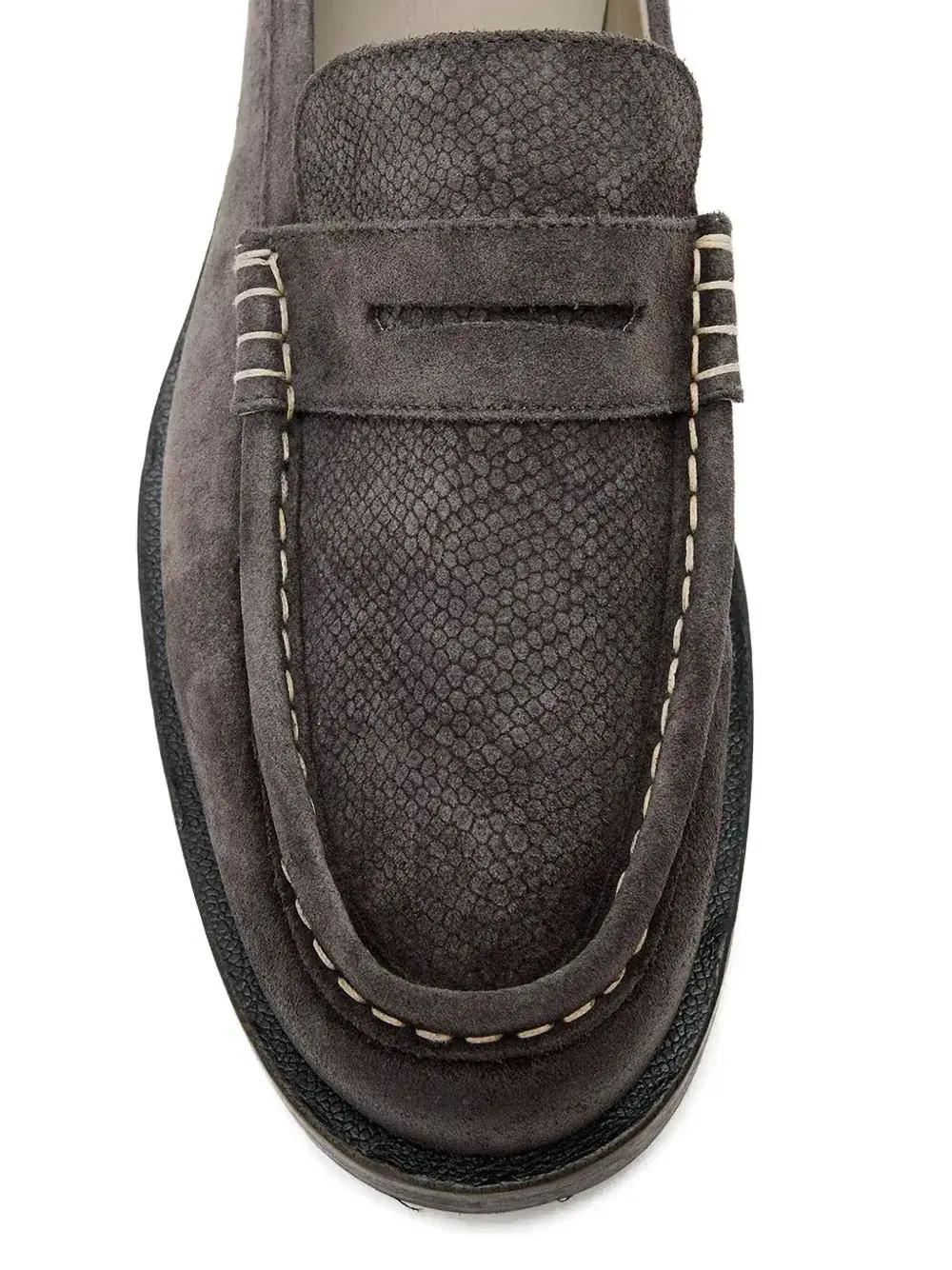 тепло-серый лоферы с ремешком-пенни, прострочкой и петелькой для натягивания