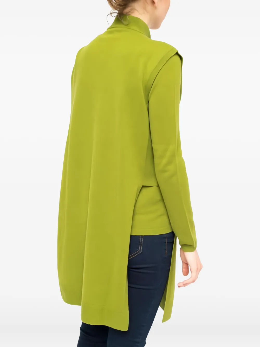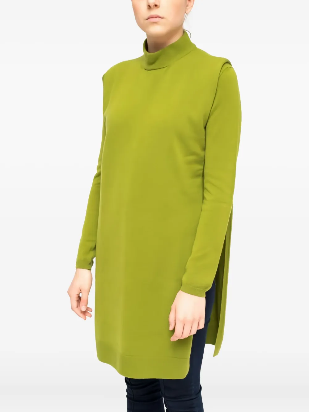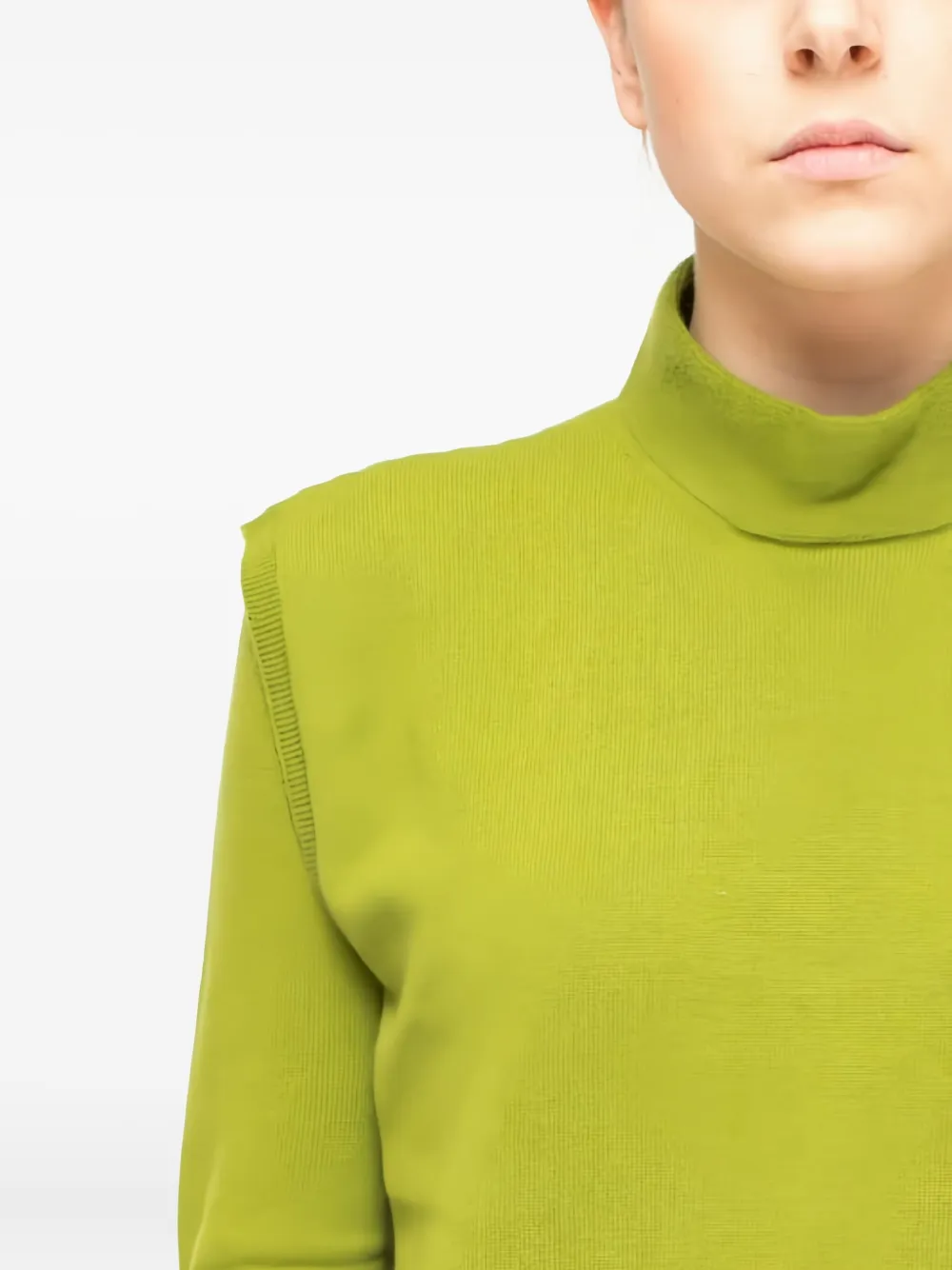 зеленый топ с высоким воротом, без рукавов, длинные рукава