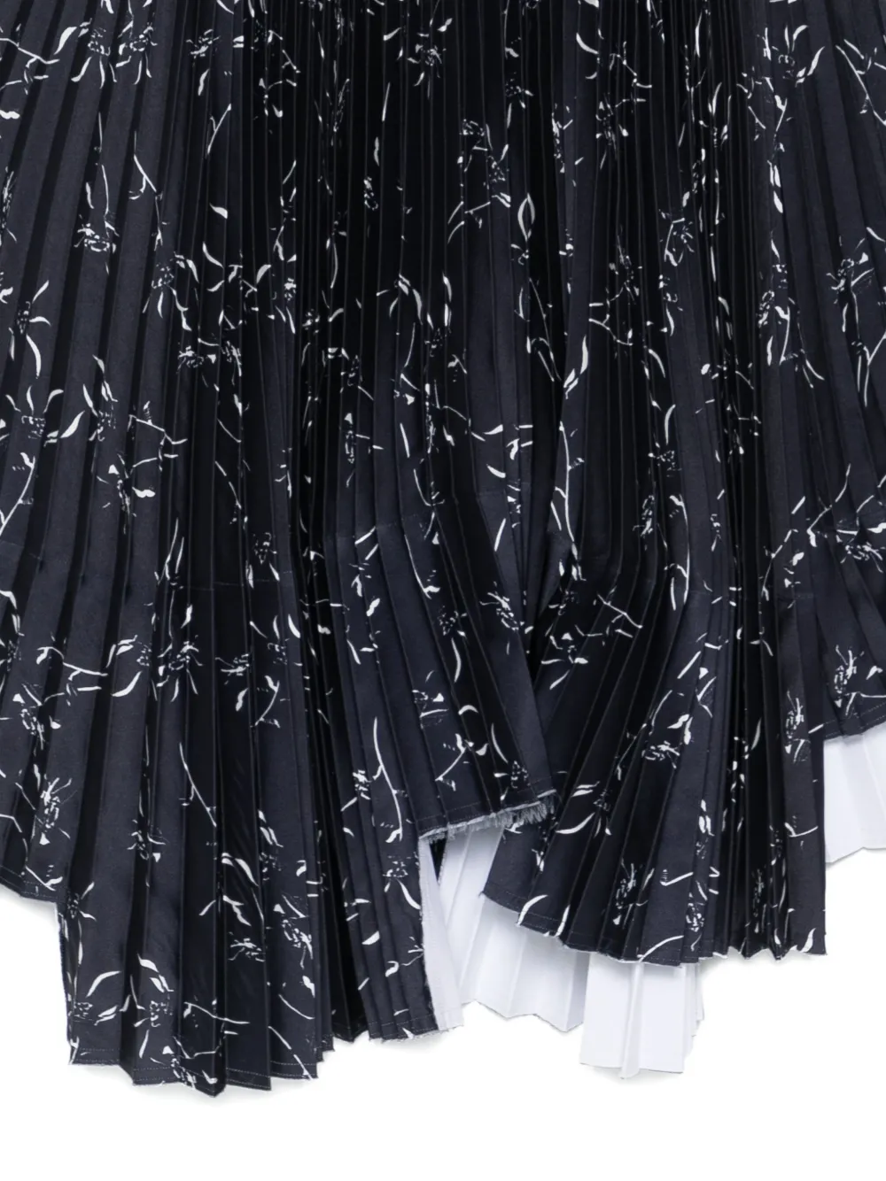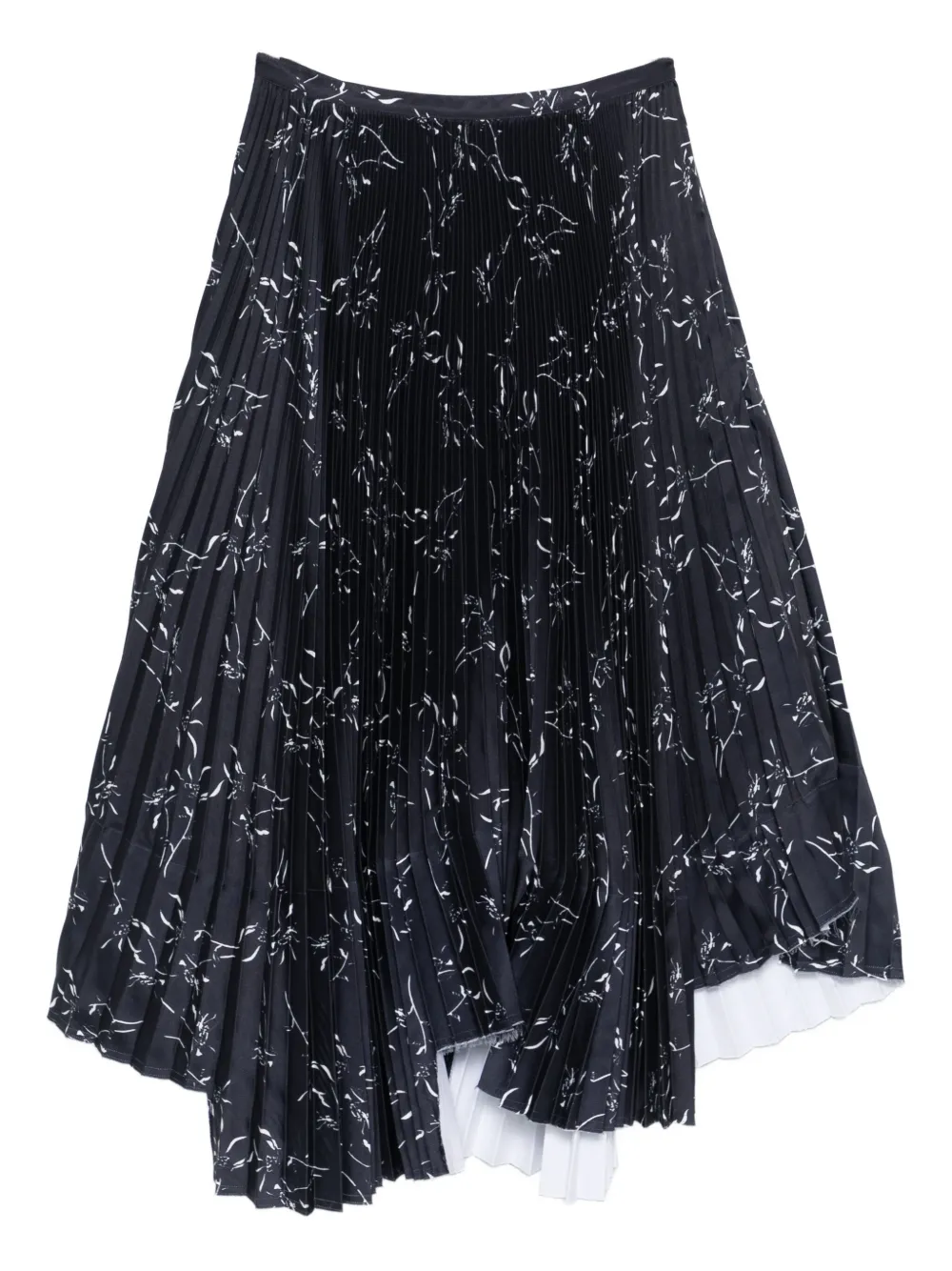 черная плиссированная юбка с абстрактным принтом и асимметричным подолом