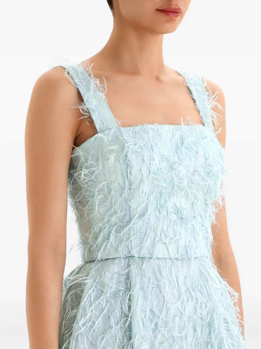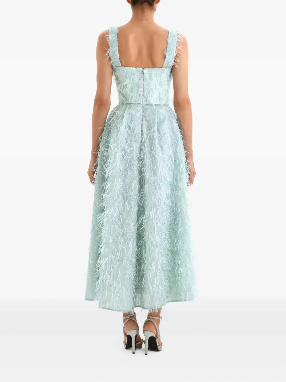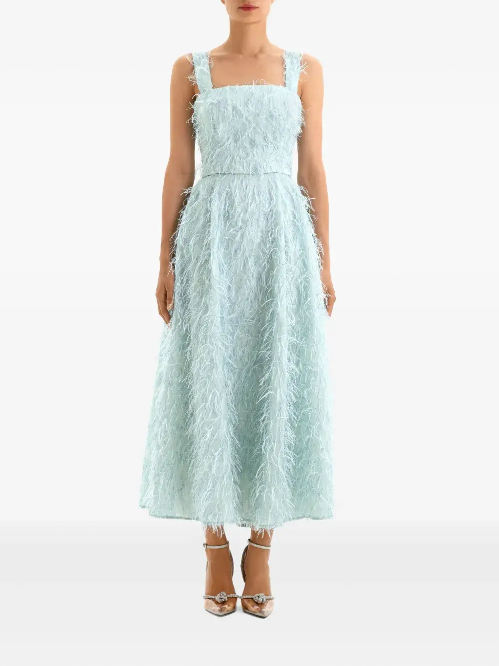 Платье миди с отделкой из перьев Post Meridiem, синий 75 397₽