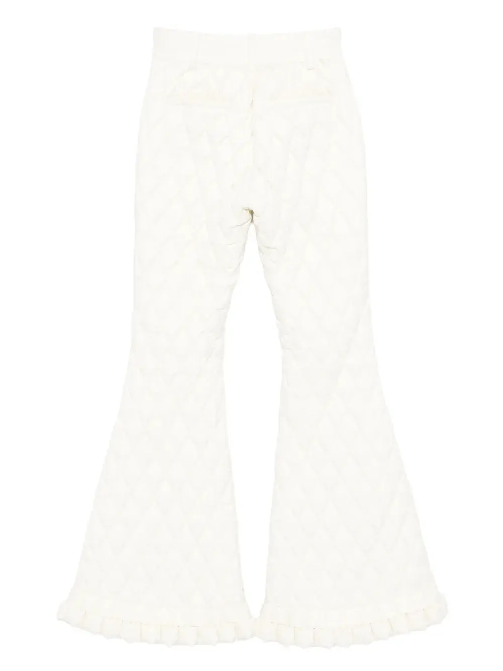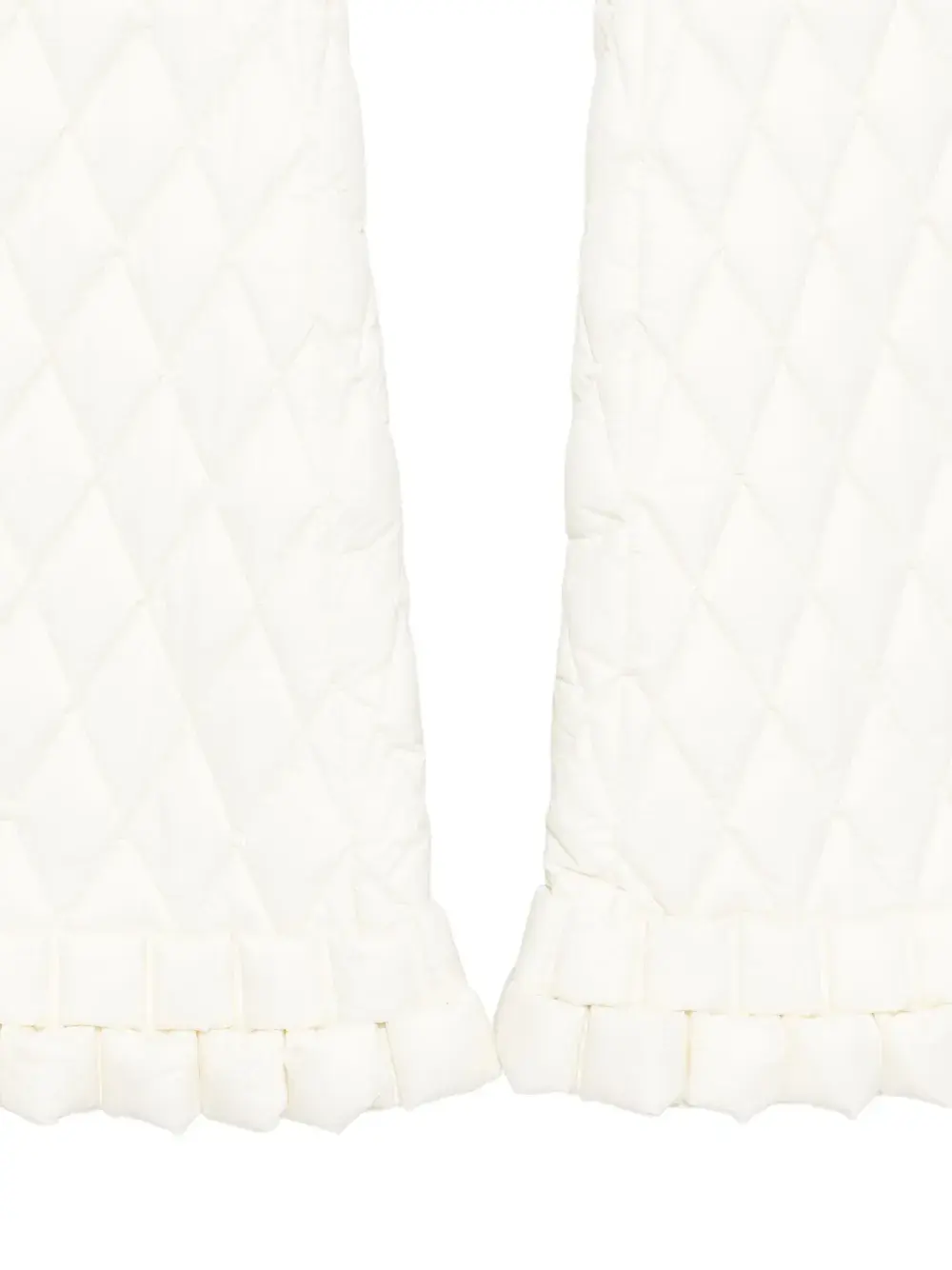 белый стеганый дизайн, оборчатый низ, передние карманы, шлевки для пояса, скрытая застёжка