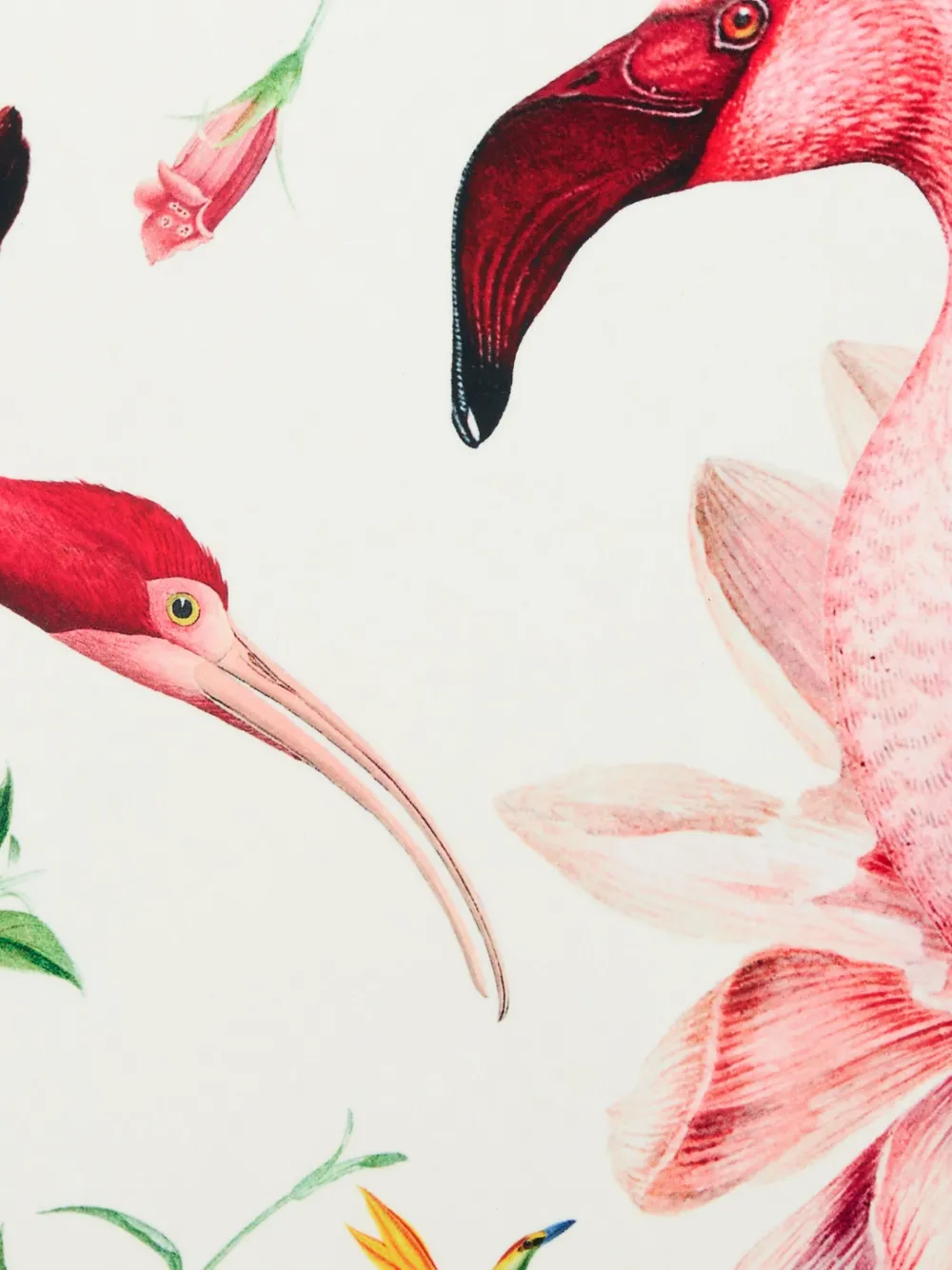 белый многоцветный принт с птицами и цветами, круглая форма