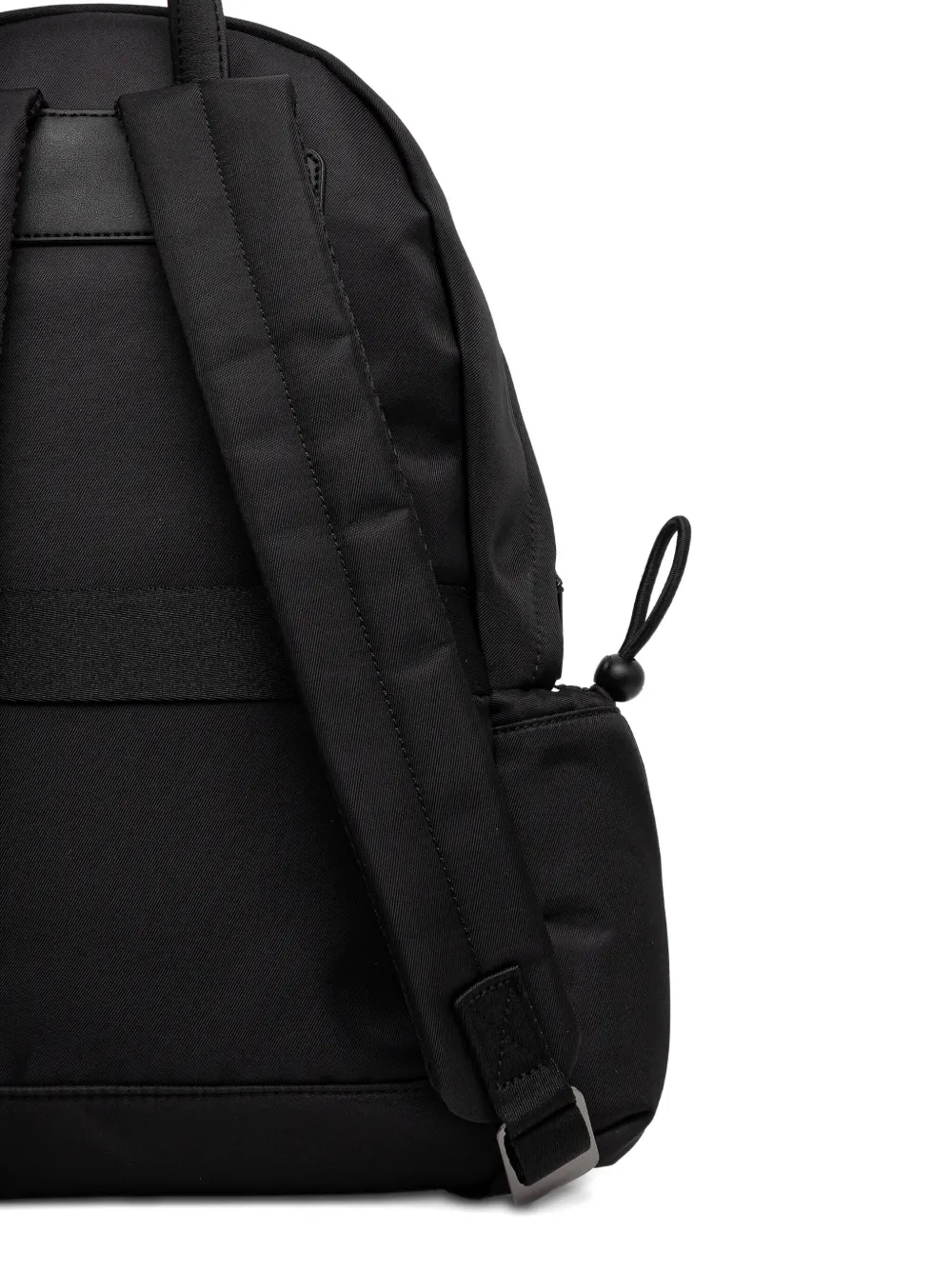 черная ручка сверху, передний карман на молнии, регулируемые плечевые ремни, нашивка с логотипом, шнурок