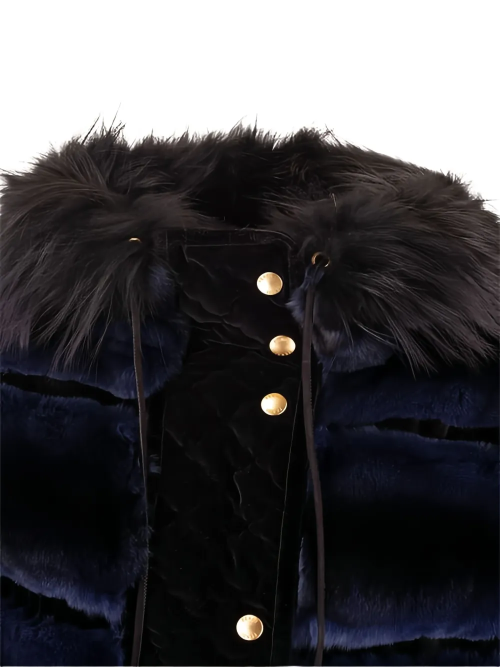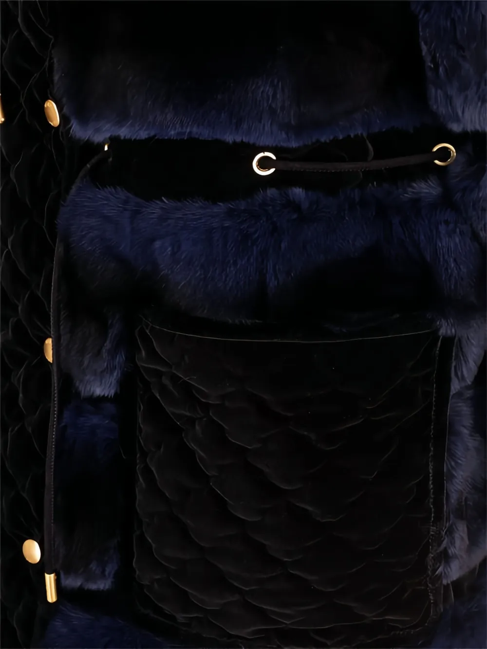 Стёганое пальто из меха Fendi, синий 2 201 578₽