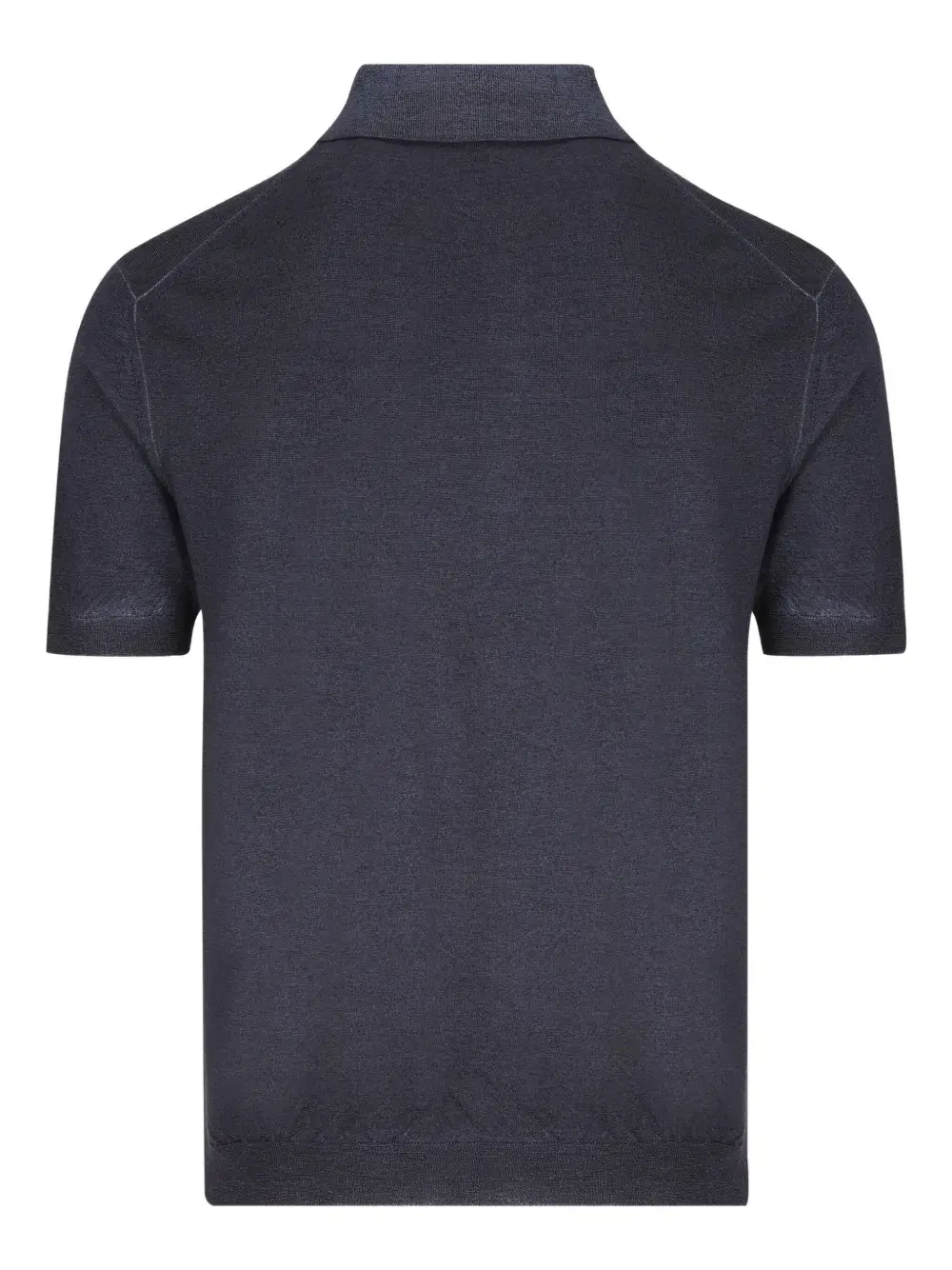 темно-синее кашемировое поло, вышитый герб, застежка на пуговицы, короткие рукава, отложной воротник