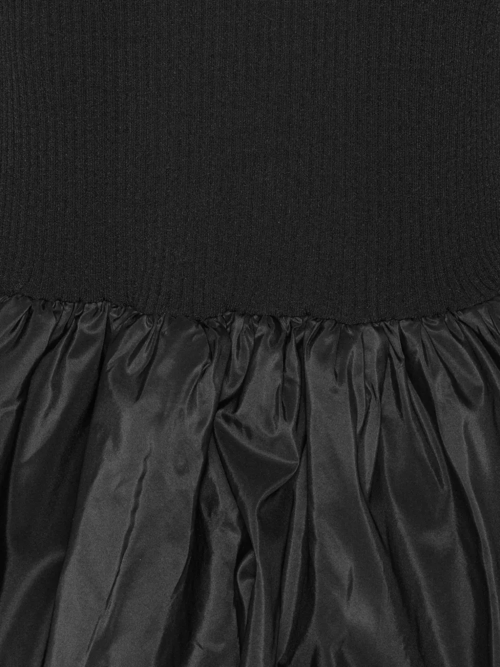 черный топ с открытой спиной, длинными рукавами, вязаной текстурой и оборчатым подолом