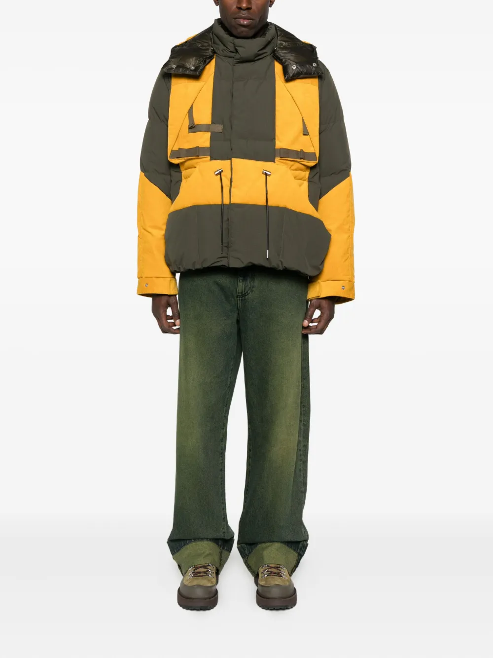 Пуховик с капюшоном и вставками Sacai, желтый 271 217₽