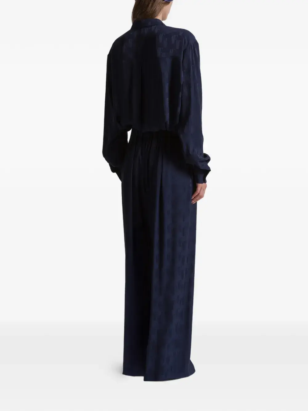 синие широкие брюки с эластичным поясом и узором по всей поверхности