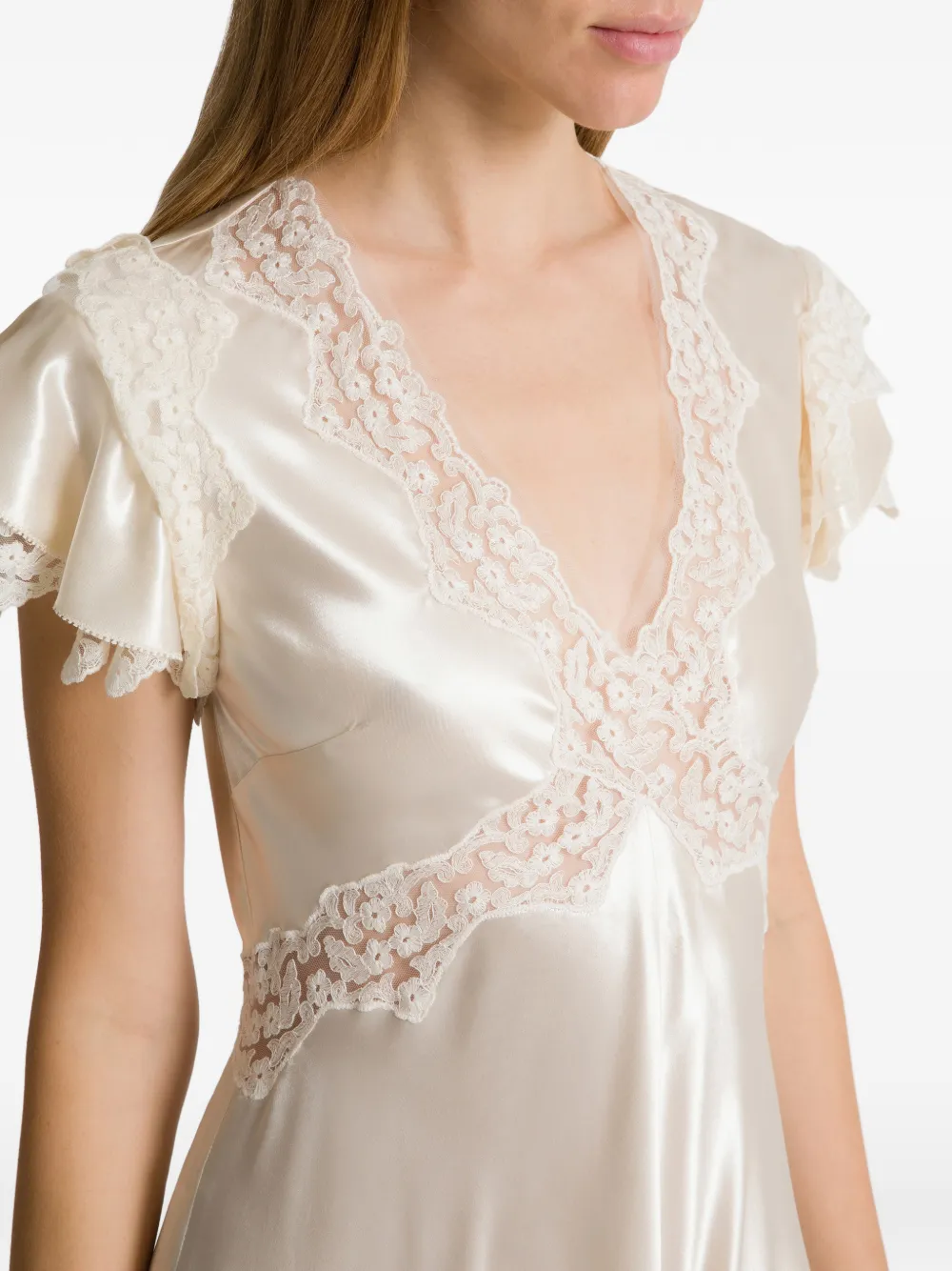 Макси-платье с кружевной отделкой Alberta Ferretti, белый