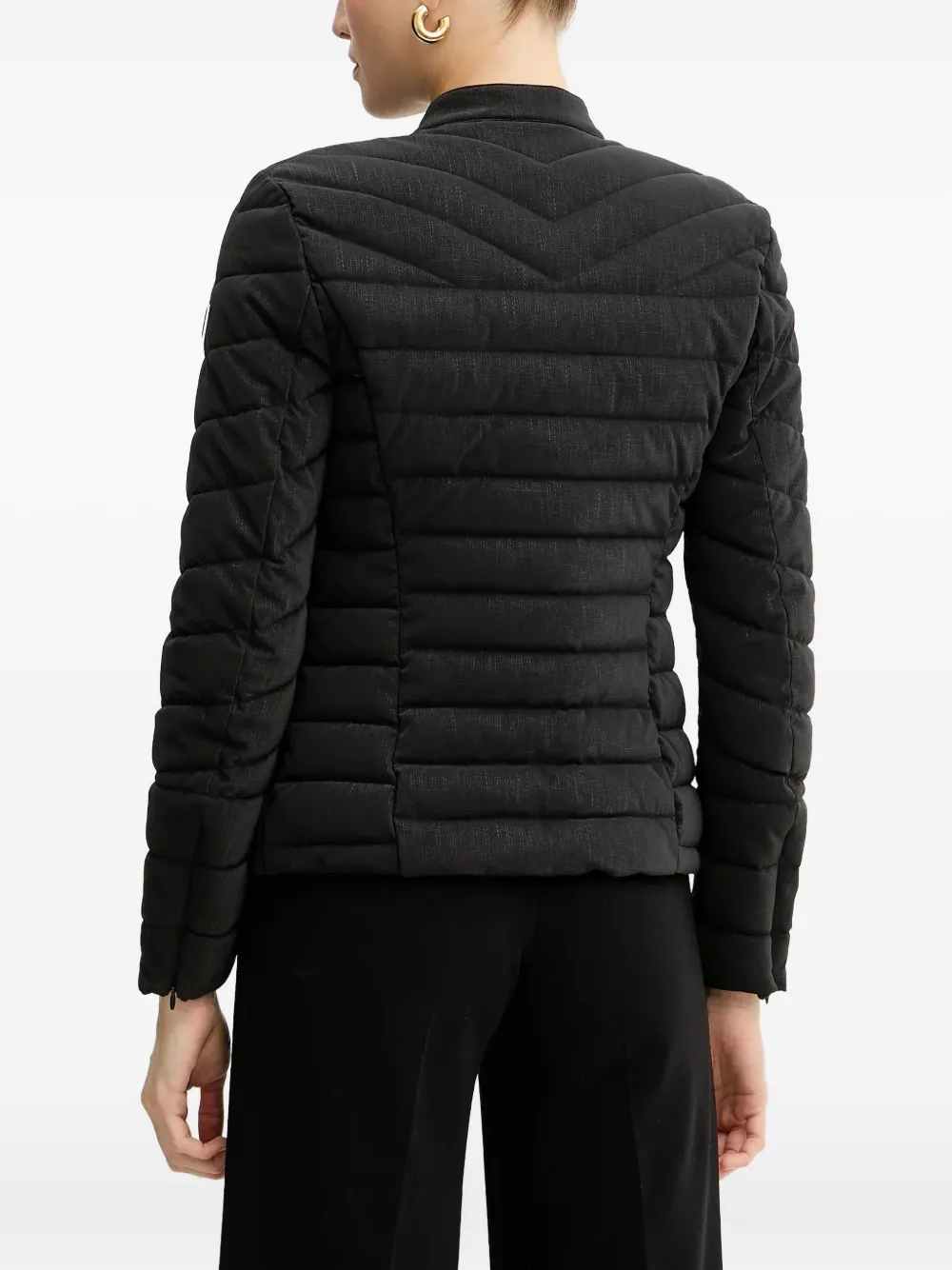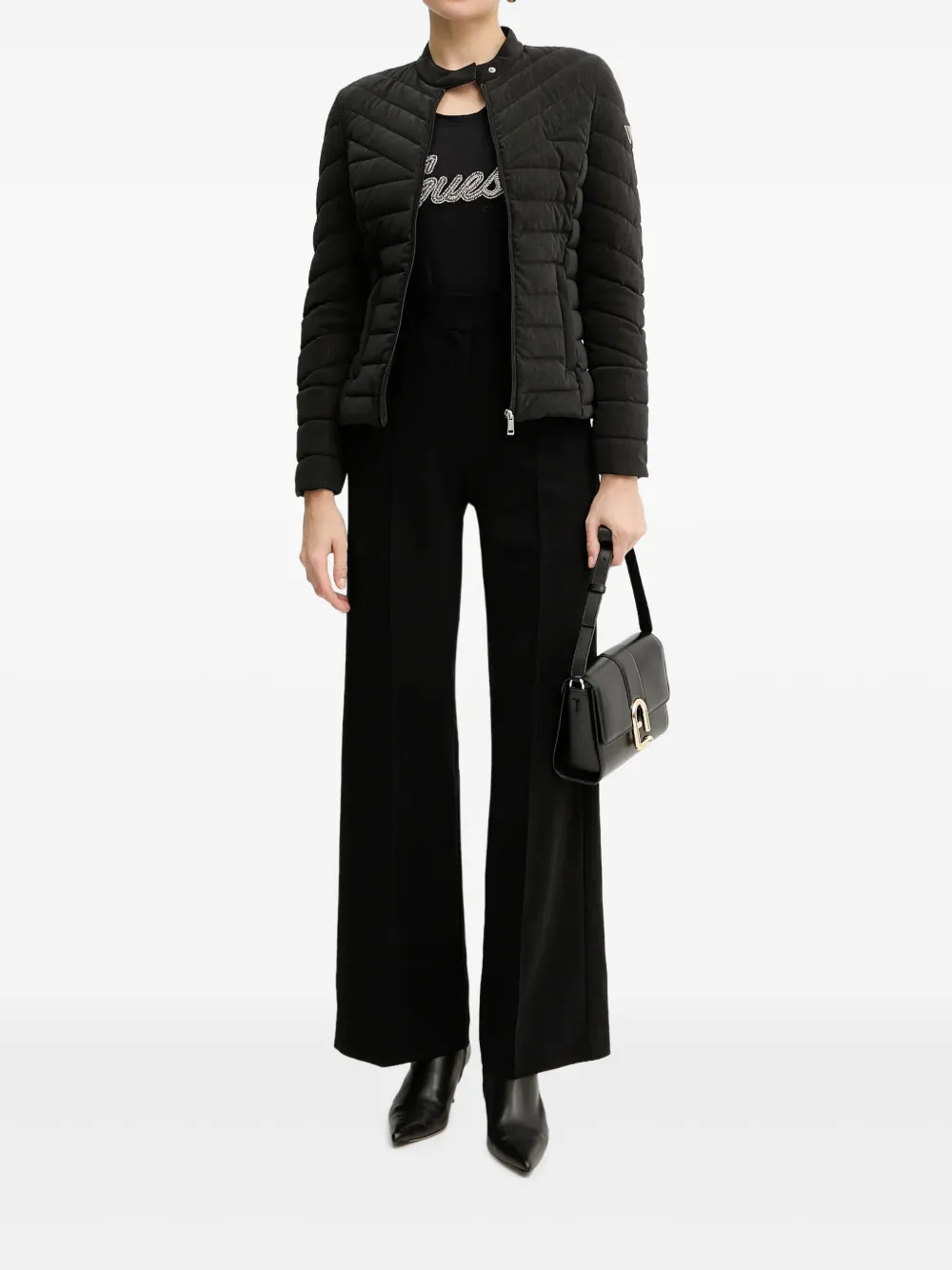 чёрный стёганый дизайн, застёжка-молния, нашивка с логотипом, боковые карманы