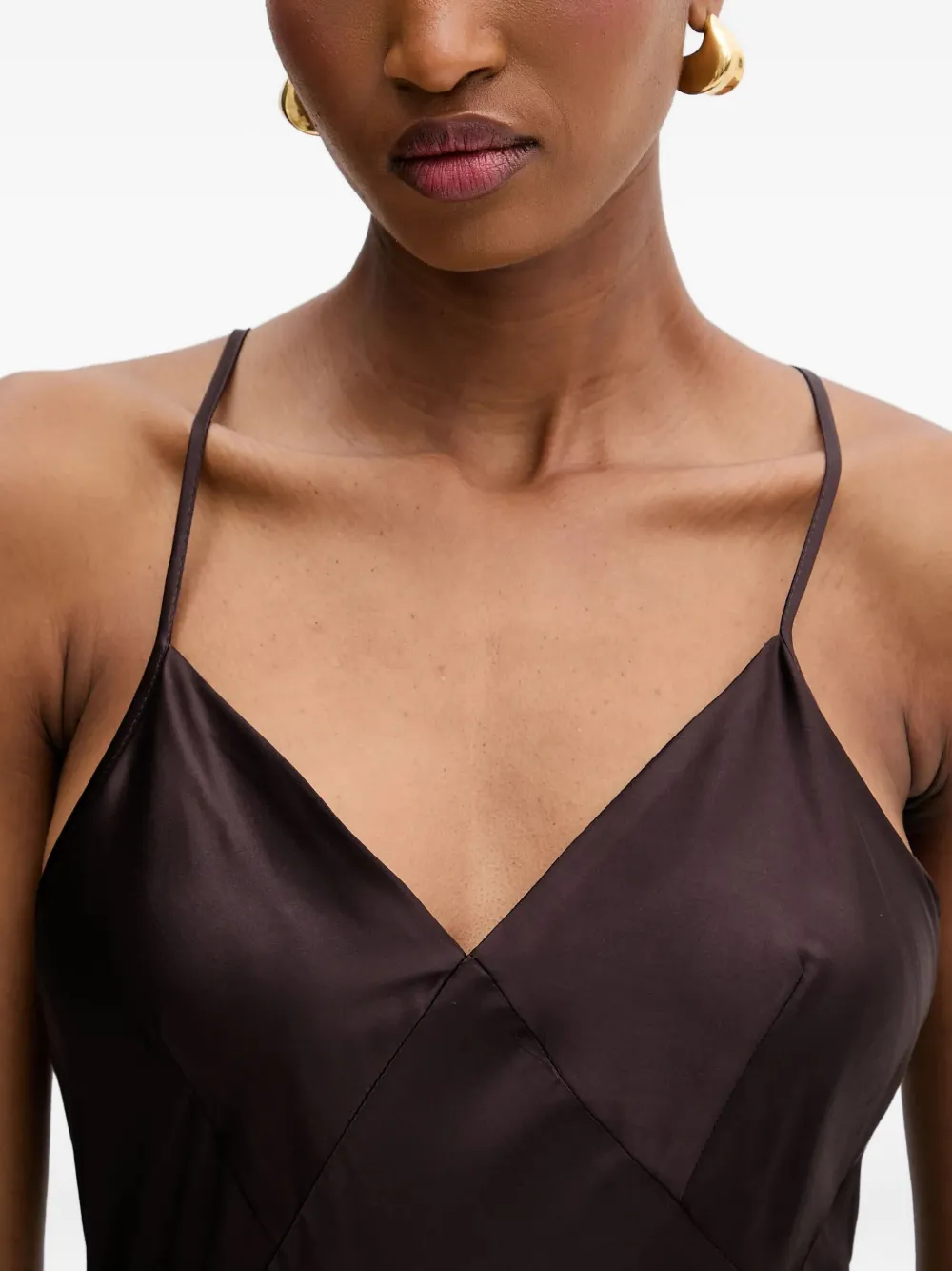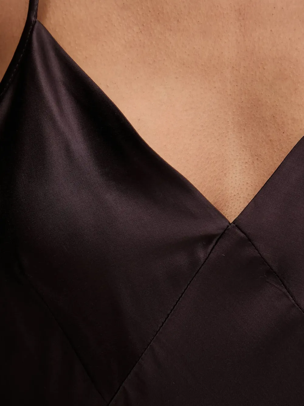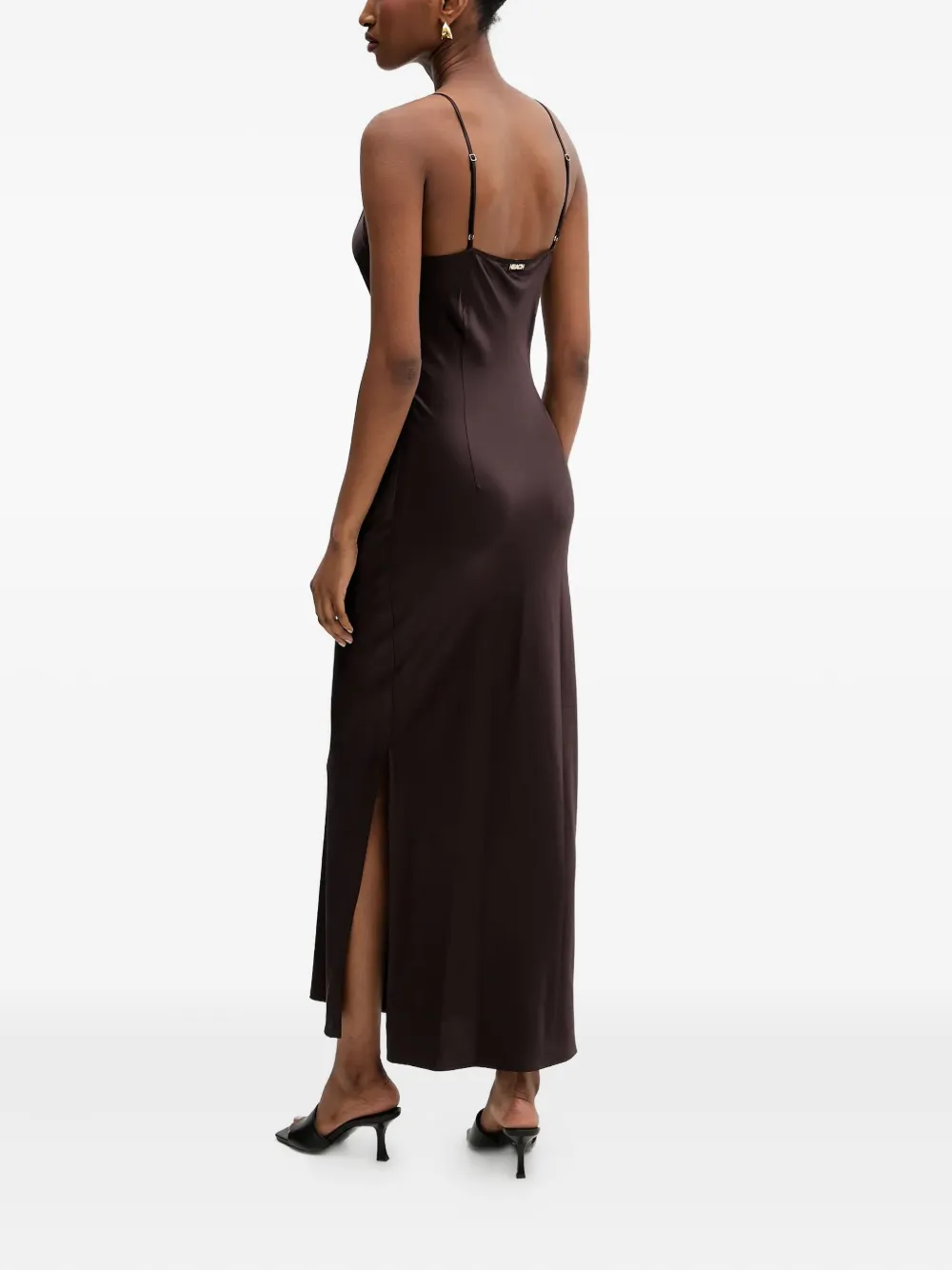 кофейно-коричневый цвет, бретели-спагетти, V-образный вырез, боковой разрез, регулируемые бретели