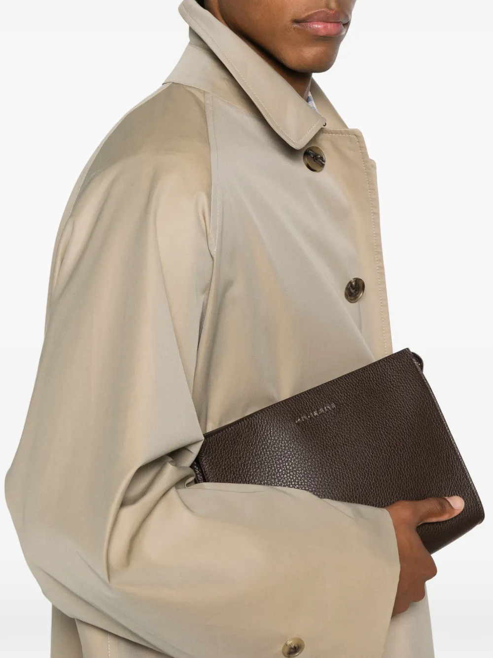 чёрный топ с зернистой текстурой, застёжка-молния сверху, внутренние открытые карманы