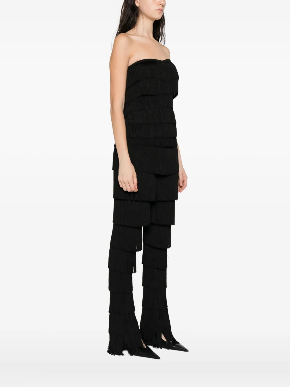 Топ без бретелек с бахромой Norma Kamali, черный 38 727₽
