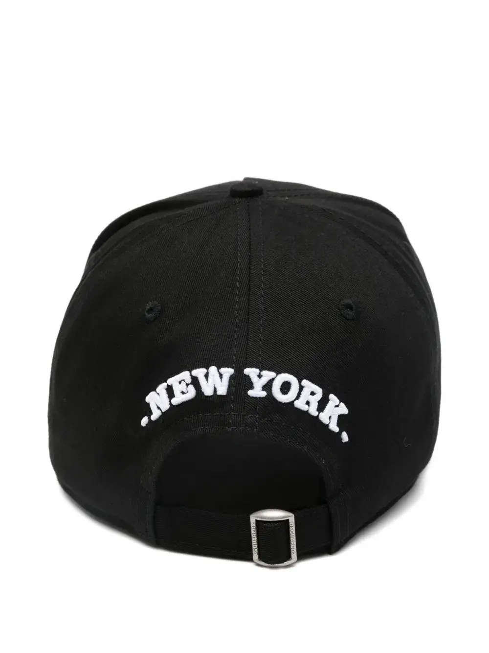черная кепка с логотипом, надписью, сердечком, бахромой по краю, регулируемой пряжкой и вышивкой «new york»